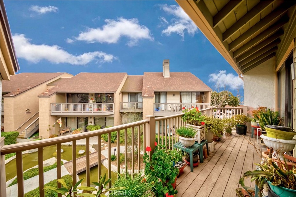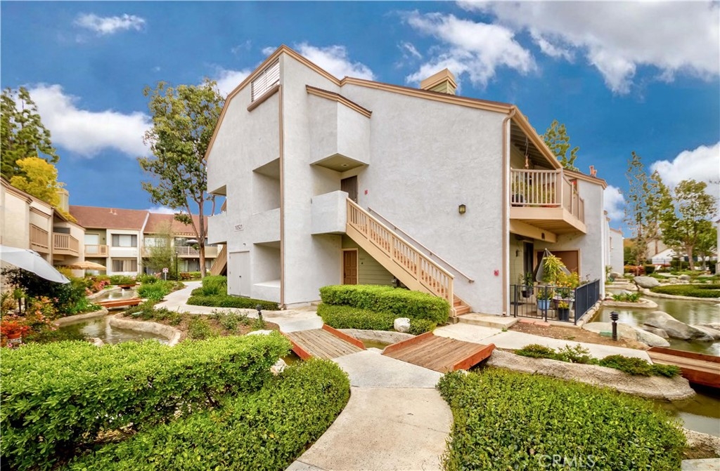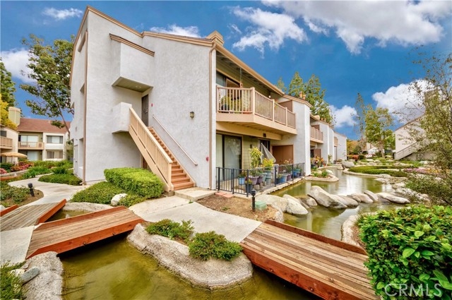 Welcome to the Lakeside Garden Grove Community, walking to your front door as you are greeted with the tranquil sound of running water from the streams that mender the complex. Bright and airy 2 bedroom, 2 bath upstairs unit condominium, as you enter the home to you left you will have easy access to the dining area and kitchen, vault ceiling, fireplace, looking out from the kitchen, there is an open spacious living room with a sliding glass patio door which leads to patio, add patio furniture and make it a relaxing lounge area, The laundry closet is tucked away by the side of the patio, master bedroom along with a walk-in closet, a private patio offers the primary suite and slider to the second bedroom. assigned carport space and guest parking. Community has an array of service to a enhance the quality of life for residents such as 2 large swimming pool, 2 spa, gated, streams running, doggy bag dispense.