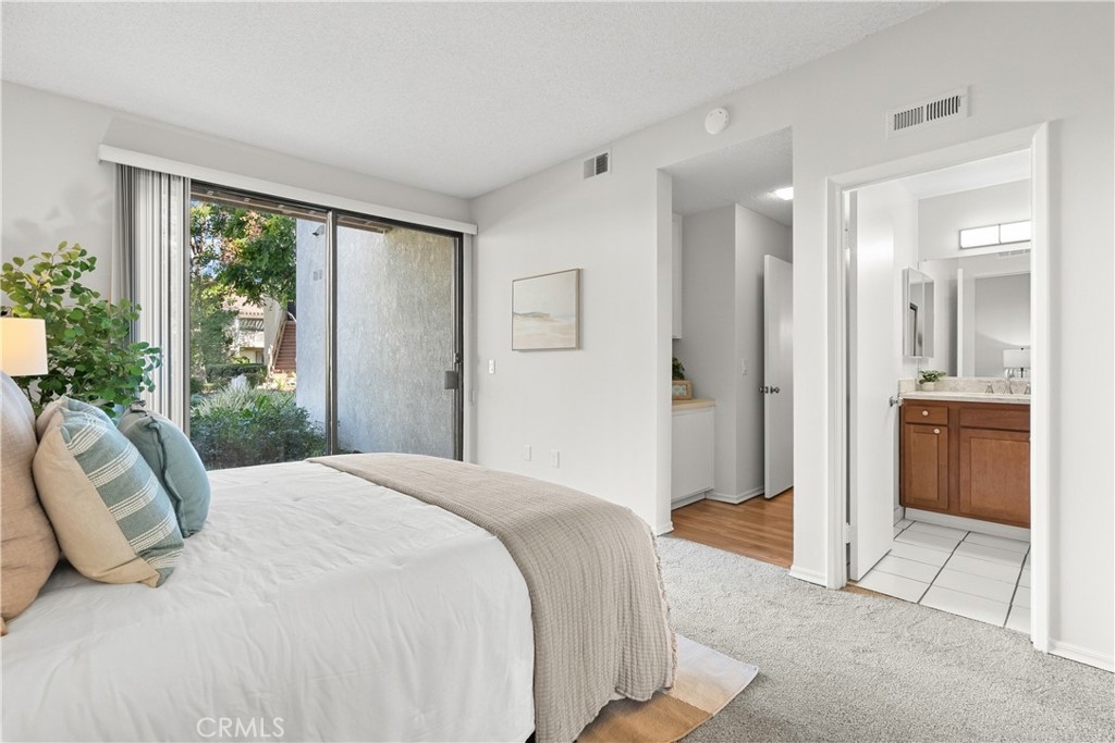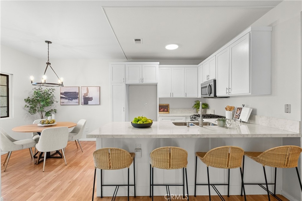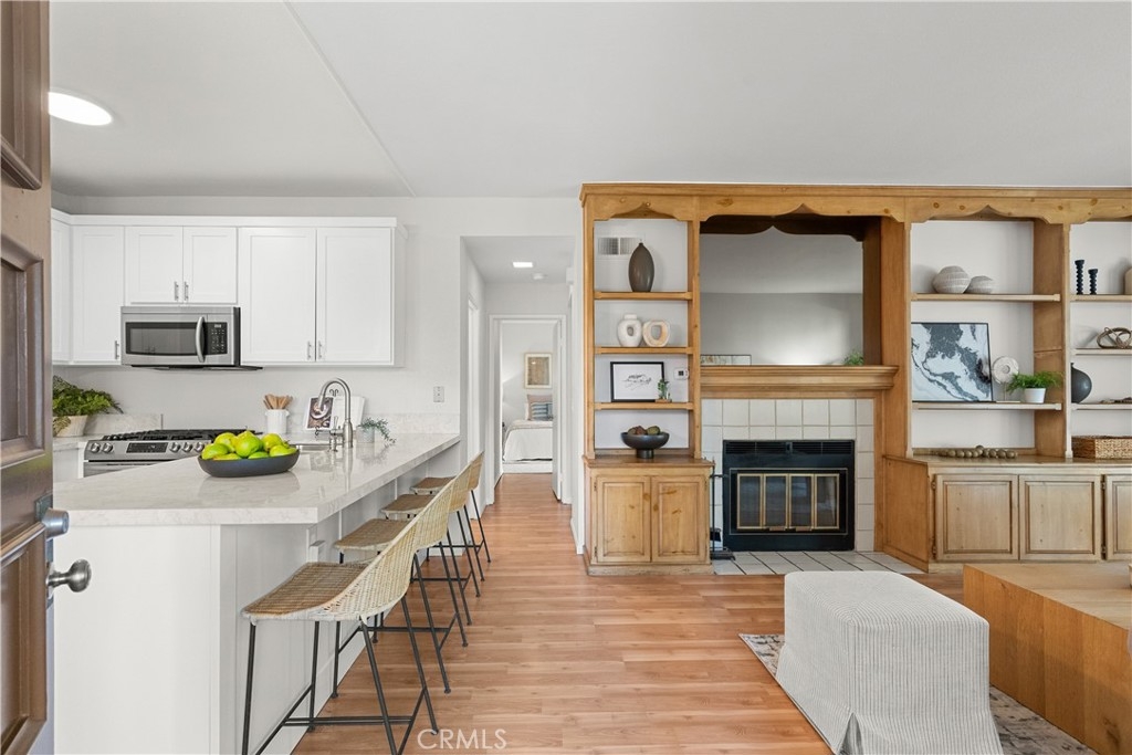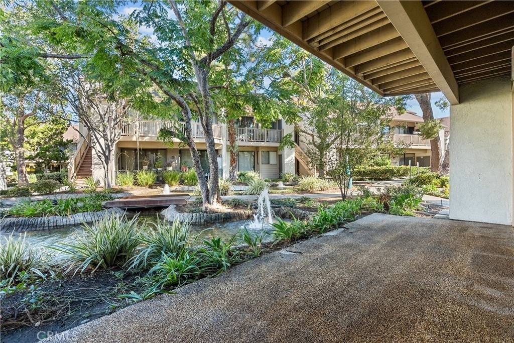 Welcome to the highly desirable and serene Lakeside community in Garden Grove! Enjoy peaceful living surrounded by lush landscaping, tranquil streams, and winding walkways in this beautifully maintained gated complex. This bright and spacious home showcases modern updates throughout. The kitchen features quartz countertops, a stylish backsplash, white shaker cabinets, and stainless-steel appliances. The living room’s custom built-in adds both function and charm, serving as the perfect focal point of the space. The primary bedroom offers a generous layout with a large walk-in closet and private ensuite bathroom. The second bedroom is also spacious. The hall bathroom includes a shower/tub combination. A full-size washer and dryer are neatly tucked into a dedicated laundry closet for added convenience. Step outside to enjoy multiple private patios, ideal for morning coffee or evening relaxation while taking in the calming views of streams and ponds throughout the community. Community amenities include a sparkling pool and spa. The HOA covers gated entry, grounds maintenance, and trash service. Two covered assigned parking spaces included . Conveniently located near Costco, Home Depot, restaurants, and shopping, this Lakeside gem offers the perfect blend of comfort, convenience, and resort-style living.