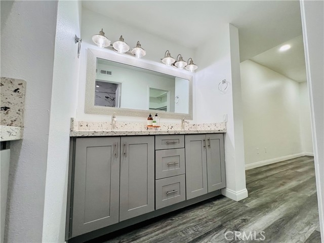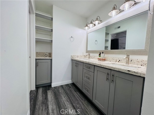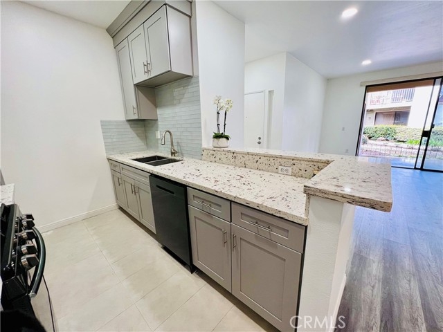 Welcome to the serene Lakeside Garden Grove community! Imagine walking to your front door as you are greeted with the tranquil sound of running water from the streams that meander the complex. As you enter the home, to your right, you will have easy access to the dining area and kitchen. Looking out from the kitchen, there is an open spacious living room with a sliding glass door which leads to a large private patio. Add patio furniture and make it a relaxing lounge area. The private laundry closet is tucked away by the side of the patio. There is an en-suite double sink bathroom in the master bedroom along with a huge walk-in closet. This turnkey ground level condo was completely remodeled, updates features new flooring throughout, Samsung appliances, new vanity, new kitchen cabinets, quartz counters, sinks, bathtub, toilet, new water heater, new HVAC, remote control ceiling fans, recessed lighting on dimmers, fixtures, and wall to wall paint. You just need your own personal touches. The nearby carport space is #40. The HOA includes sewer, trash, water, exterior maintenance, and security. There are also 2 large pools, 2 spas, gated entry and exit, and plenty of walking trails throughout the complex with doggy bag dispensers and trash cans for all the dog owners out there. Close access to 22 and 5 freeways, City Hall, shopping, and Main St. Around the corner is also Home Depot, Steelcraft, and Costco. This one won't last long!!!