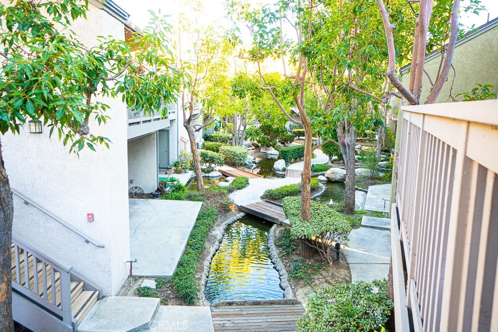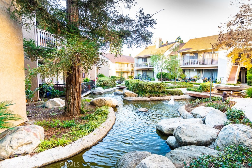 IMAGINE WAKING UP TO THE SOOTHING SOUNDS OF RUNNING RIVER STREAMS EVERYDAY ! THIS AMAZING HOA COMMUNITY HAVE JUST THAT ! One of kind community so beautifully landscape with river stream throughout. This Corner Unit have beautiful stream river view just outside of its balcony ! This is also an upper unit conveniently located near parking space and mail box. Walking distance to Garden Grove Elementary. Near Costco, Dalat Supermarket, Starbuck, Home Depot, etc. etc. HOA covers water and Trash. No One above this unit, have 2 assigned Carport space. This unit is one of the larger floor plan . The best feature is the gourmet kitchen openns into the grand living room with high ceiling. There are sliders that opens into balcony in master suite and living room and 2nd bedroom. Natural light from skylight windows. Turnkey condition