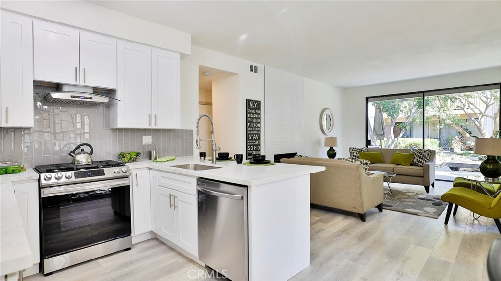 Everything is NEW!! This home is beautiful and fully remodeled. New energy efficient appliances, new HVAC, new high quality laminate and tile flooring, new cabinets and quartz countertops throughout, new custom tile designs on the backsplash, fireplace and showers, new paint, new lighting fixtures! Take a stroll through your own personal park in this BEAUTIFUL community. Feed the ducks, splash in the pool, relax in the hot tub. Everything is at your fingertips. This condo is located right next to the community pool so you don't have to go far to take a dip! This home is about as close as it gets to new construction! A short distance to shopping and the 5, 22 and 405 freeways- and much more! Imagine being able to live in your own little beach oasis year round! This place won't be on the market long, so schedule yourself a viewing and stop in today!