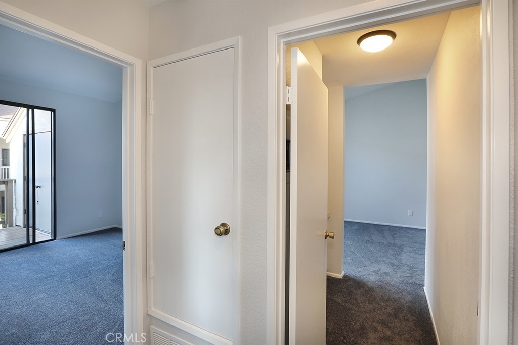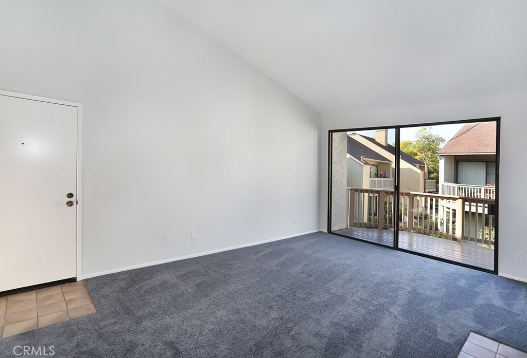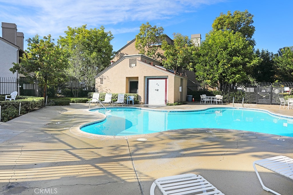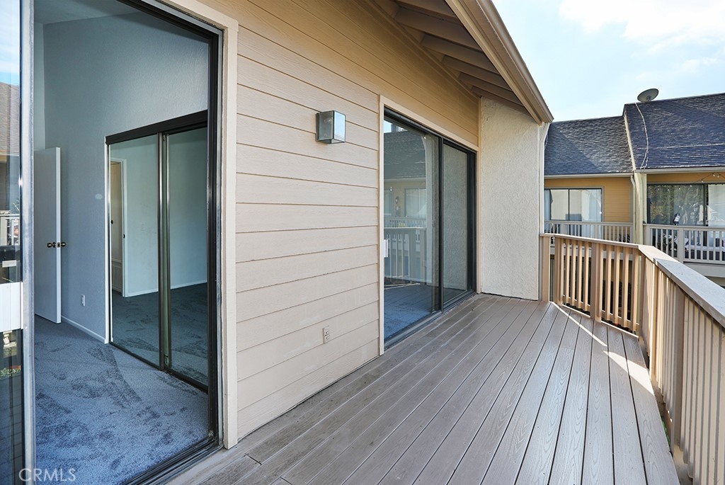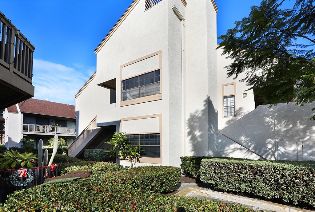 This gorgeous end unit has vaulted ceilings and NO ONE ABOVE. With large bedrooms and two full bathrooms, the open and bright layout is perfect. This property has a spacious living room with soothing fireplace and sliding glass doors that opens to a huge private patio that spans the length of the home. The large master bedroom also has a sliding glass door that leads to a private bedroom balcony. The large 2nd bedroom also has balcony access. This property includes two reserved parking spaces, views of the tranquil stream that runs through the property and personal laundry room. The private community includes two pools, spa and has a very safe and secluded feel due to secure gating and mature landscaping.