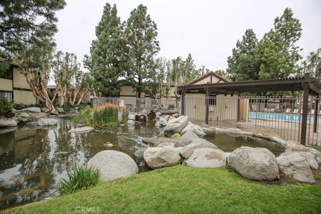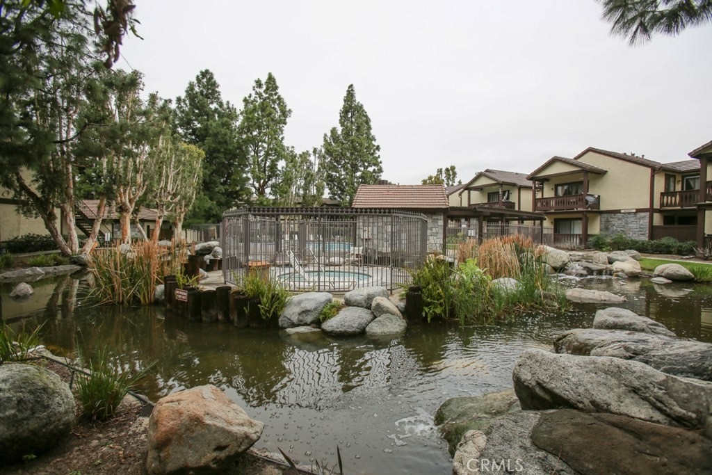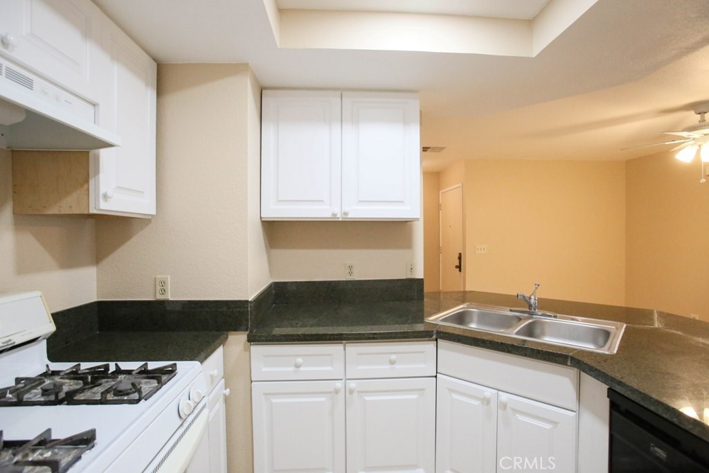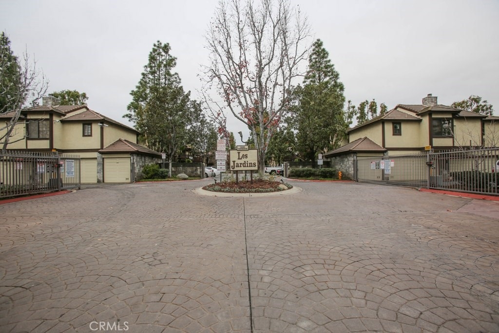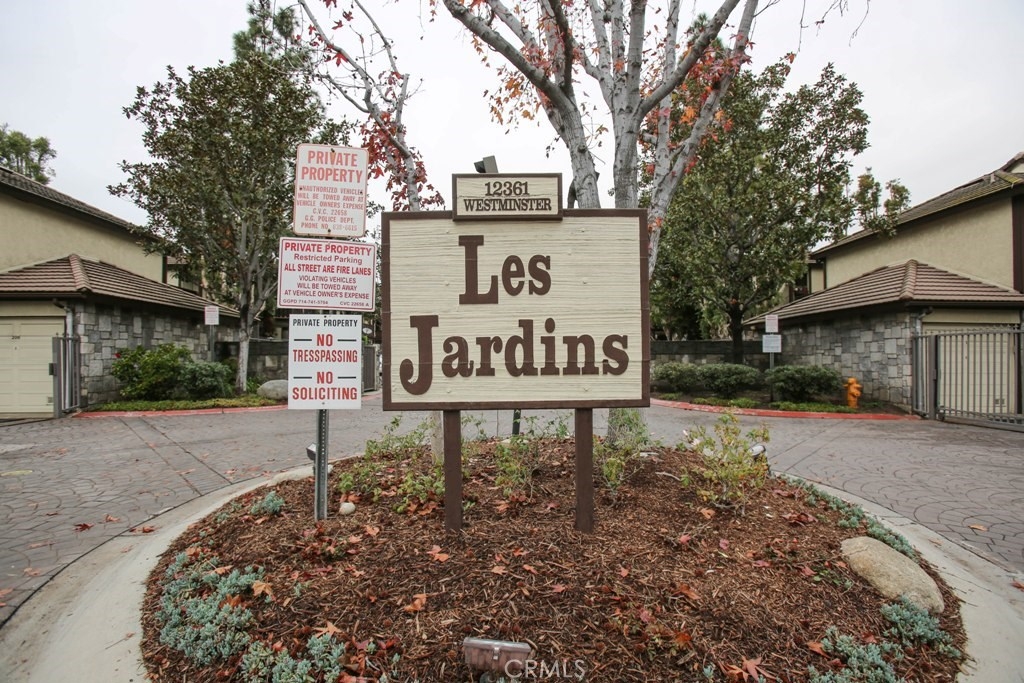 This completely remodeled one bedroom is an end unit with many upgrades. It is conveniently located in the highly desirable, private gated community of Les Jardins. It is a resort-style gated complex offering a serene setting of lush landscapes, streams, duck ponds, wooden bridges, waterfalls, two swimming pools, a spa and an accessible clubhouse. The unit features an updated kitchen that includes beautiful white cabinetry, granite counter tops, and recessed lighting. The adjoining eating area offers a ceiling fan and sliding glass doors leading to the private patio. The spacious bedroom easily fits a California king size bed. The walk-in closet includes custom organizers. The bathroom offers a large soaking tub/shower combination with tiles surrounding the enclosure and linen storage. AC and heating add to the upgrade. The unit includes a detached, two-car garage with extra storage space. The laundry closet includes the washer and dryer. This community is located close to schools, freeways, restaurants and shopping areas. Come on in , check it out , make it yours.