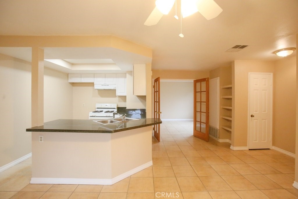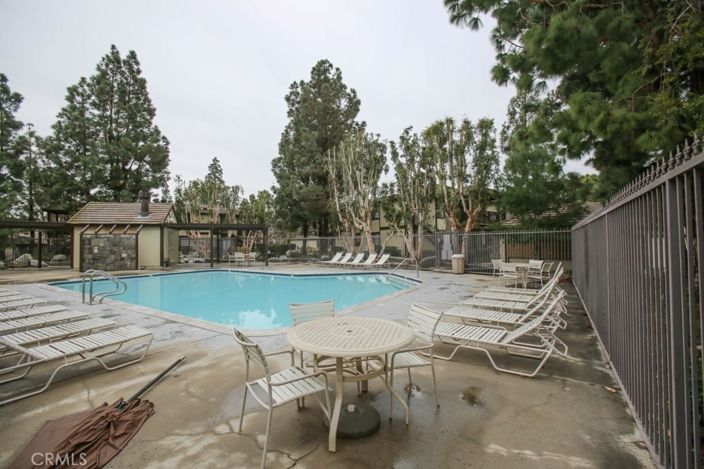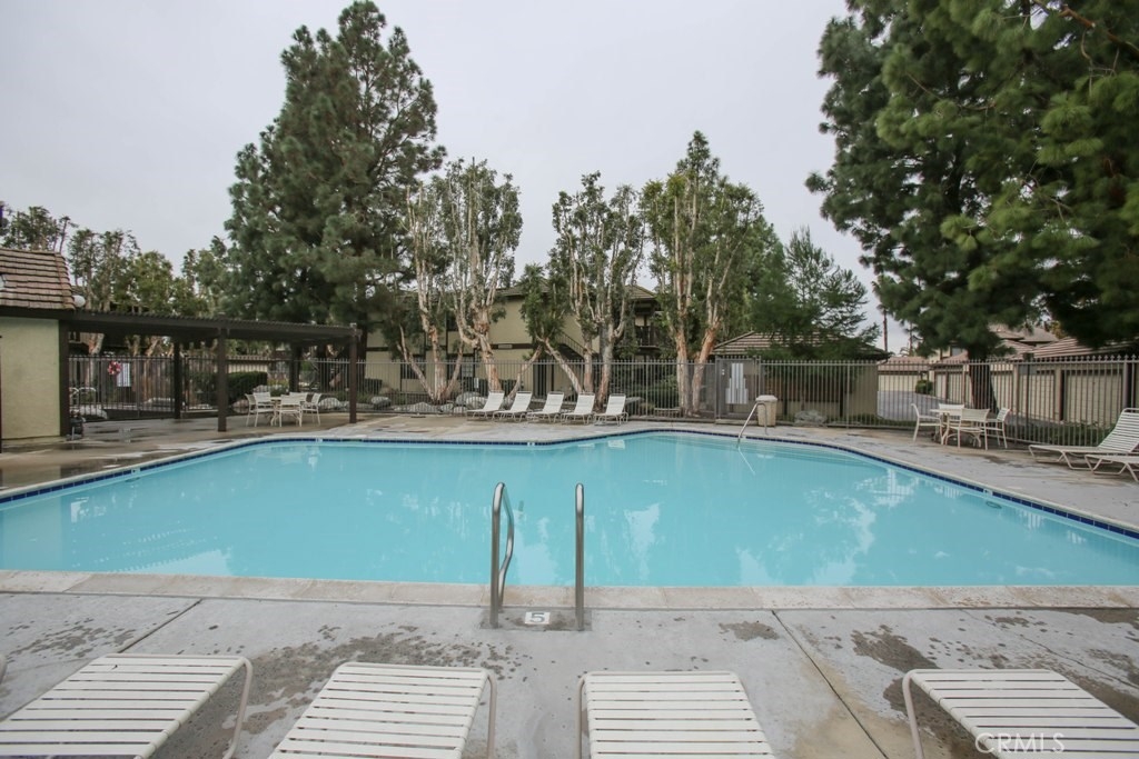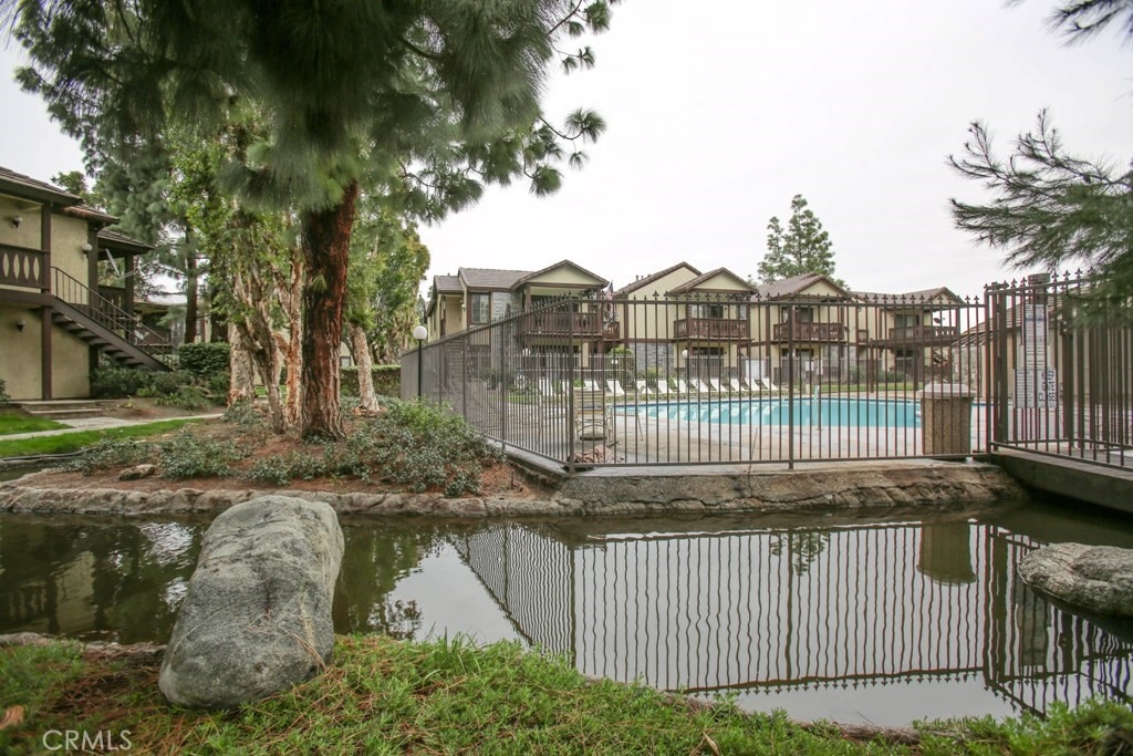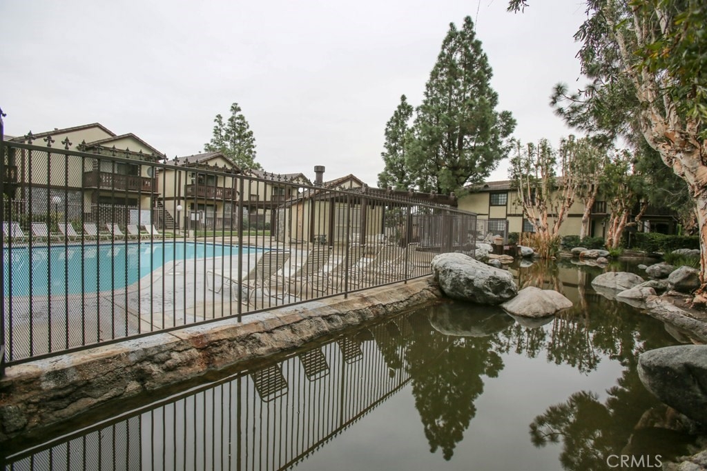 This completely remodeled one bedroom is an end unit with many upgrades. It is conveniently located in the highly desirable, private gated community of Les Jardins. It is a resort-style gated complex offering a serene setting of lush landscapes, streams, duck ponds, wooden bridges, waterfalls, two swimming pools, a spa and an accessible clubhouse. The unit features an updated kitchen that includes beautiful white cabinetry, granite counter tops, and recessed lighting. The adjoining eating area offers a ceiling fan and sliding glass doors leading to the private patio. The spacious bedroom easily fits a California king size bed. The walk-in closet includes custom organizers. The bathroom offers a large soaking tub/shower combination with tiles surrounding the enclosure and linen storage. AC and heating add to the upgrade. The unit includes a detached, two-car garage with extra storage space. The laundry closet includes the washer and dryer. This community is located close to schools, freeways, restaurants and shopping areas. Come on in , check it out , make it yours.