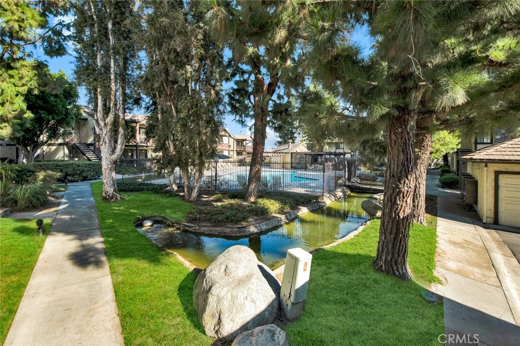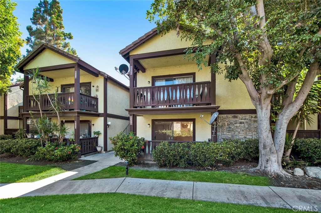 Discover the perfect blend of comfort and convenience in this charming 2-bedroom 2-bathroom downstairs condo. With 873 square feet of living space, this residence is nestled within the sought-after Les Jardines complex in the heart of Garden Grove. Recent upgrades include new stove/oven/dishwasher and a newly installed garage door opener. The layout includes two patios, one off of the living room and one off of the primary bedroom which creates the ideal setting for relaxation. Tile flooring throughout and laundry hookups are discreetly located within a closet. Tranquil man-made streams weave through the complex. Enjoy leisurely days at either of the two swimming pools or jacuzzis.