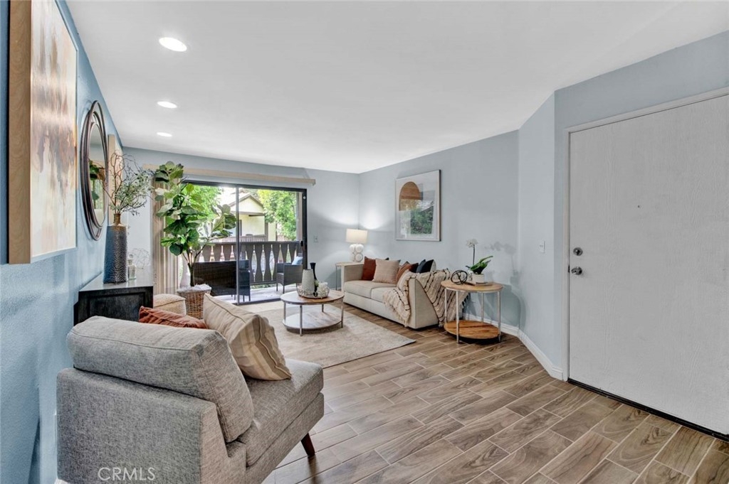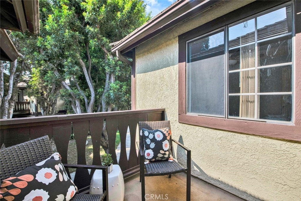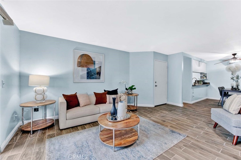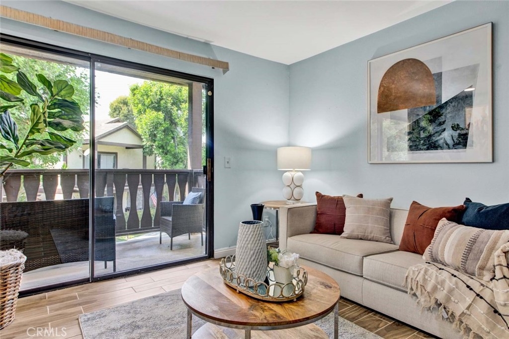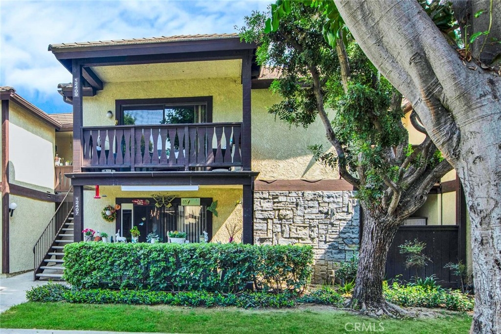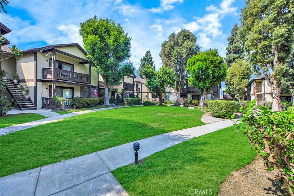 Beautifully Upgraded 2 Bedroom, 2 Bath Upper Unit with 873 Square Feet, a Detached 2 Car Garage, and 2 Balconies that Overlook the Beautifully Landscaped Greenbelts, Walking Paths, Tranquil Streams, and Waterfalls. It is Located in the Highly Desired Les Jardins Gated Community with 24 Hour Security in the Heart of Garden Grove. This Lovely Home Features Central A/C, Wood-Grain Porcelain Tile Flooring, Smooth Ceilings, Recessed Lighting, Designer Paint, and a Remodeled Kitchen that Includes Granite Countertops, Clean White Cabinetry, Stainless Appliances, Deep Chef Sinks with Designer Faucet, and a Breakfast Bar. Step Inside this Stunning Home to the Spacious Living Room with Slider that Opens to a Large Balcony that's Perfect for Barbecuing and Outdoor Dining. There is a Separate Dining Room Area with a Ceiling Fan and a Reach-Through Window to the Kitchen. A Convenient Laundry Closet for Stackable Appliances is Located off the Dining Room. Both Bedrooms have Wood Laminate Flooring and Ceiling Fans. The Primary Suite Features a Walk-In Closet, a Private Balcony, and an Ensuite Bathroom with Walk-In Shower that has been Upgraded with Wood-Type Designer Tile Surround and Clear Glass Door. The 2 Bathroom has a Tub/Shower Combo with Clear Glass Enclosure. Enjoy all the Amenities Les Jardins has to Offer with 2 Resort-Style Pools, Spa, Clubhouse, and Gorgeous Grounds with Mature Shade Trees. HOA Covers Trash, Water, and Common Area. Convenient access to Freeways 22, 5, and 57. Walking distance to Clinton Elementary and Santiago High School and a short drive to Santa Ana College. Near the Outlets at Orange, Disneyland, Steelcraft, Little Saigon, River View Golf Course, Shopping and Dining.
