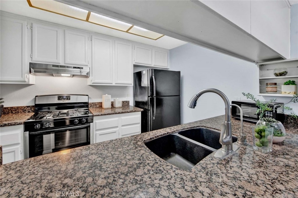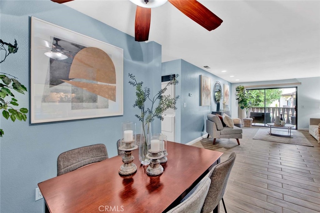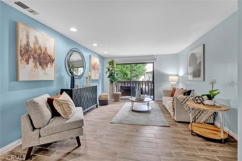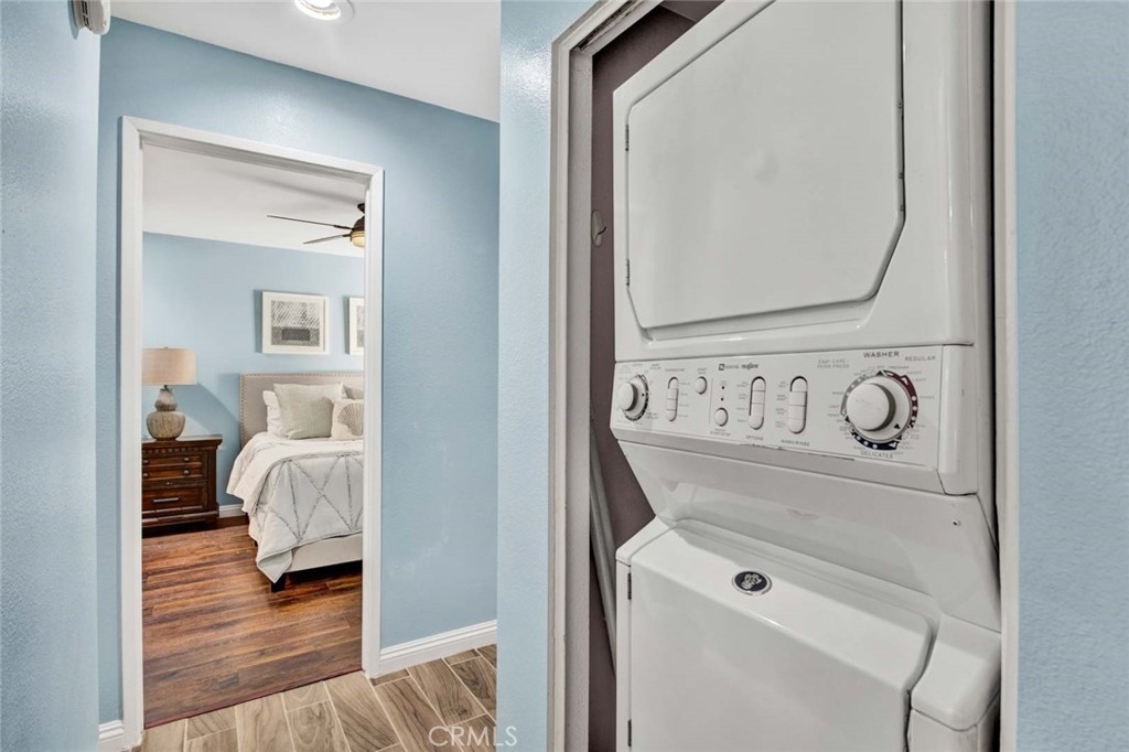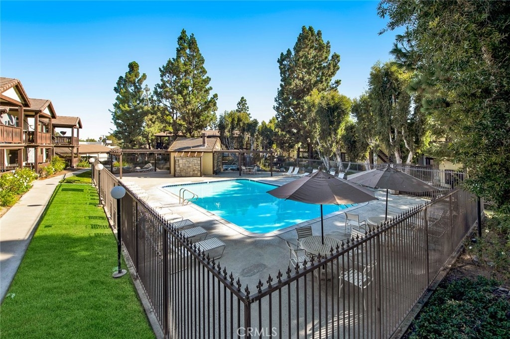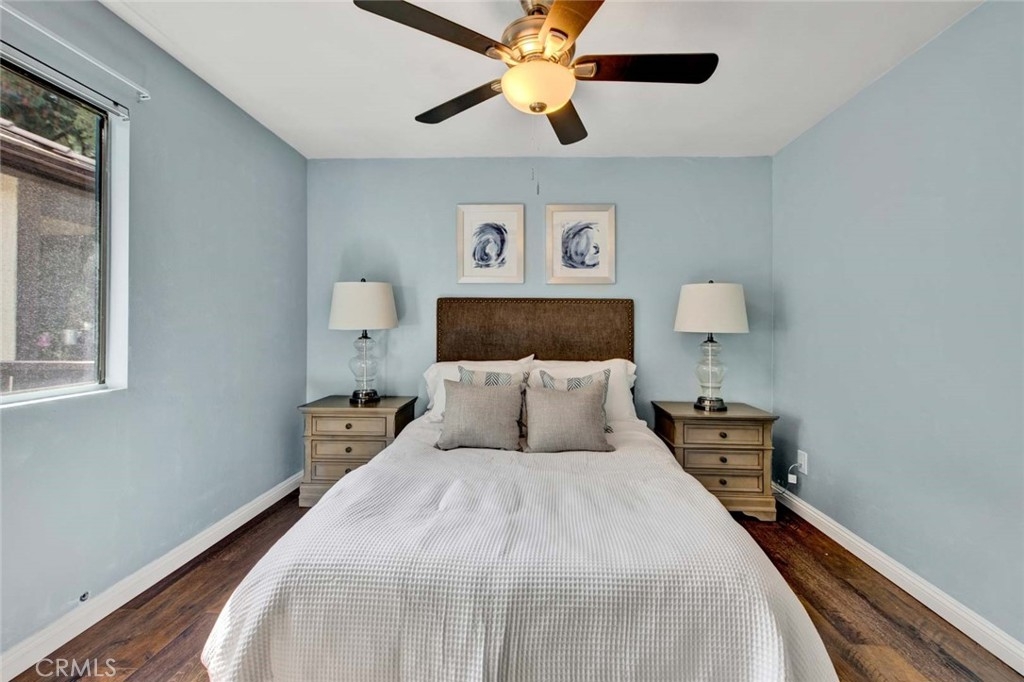 Beautifully Upgraded 2 Bedroom, 2 Bath Upper Unit with 873 Square Feet, a Detached 2 Car Garage, and 2 Balconies that Overlook the Beautifully Landscaped Greenbelts, Walking Paths, Tranquil Streams, and Waterfalls. It is Located in the Highly Desired Les Jardins Gated Community with 24 Hour Security in the Heart of Garden Grove. This Lovely Home Features Central A/C, Wood-Grain Porcelain Tile Flooring, Smooth Ceilings, Recessed Lighting, Designer Paint, and a Remodeled Kitchen that Includes Granite Countertops, Clean White Cabinetry, Stainless Appliances, Deep Chef Sinks with Designer Faucet, and a Breakfast Bar. Step Inside this Stunning Home to the Spacious Living Room with Slider that Opens to a Large Balcony that's Perfect for Barbecuing and Outdoor Dining. There is a Separate Dining Room Area with a Ceiling Fan and a Reach-Through Window to the Kitchen. A Convenient Laundry Closet for Stackable Appliances is Located off the Dining Room. Both Bedrooms have Wood Laminate Flooring and Ceiling Fans. The Primary Suite Features a Walk-In Closet, a Private Balcony, and an Ensuite Bathroom with Walk-In Shower that has been Upgraded with Wood-Type Designer Tile Surround and Clear Glass Door. The 2 Bathroom has a Tub/Shower Combo with Clear Glass Enclosure. Enjoy all the Amenities Les Jardins has to Offer with 2 Resort-Style Pools, Spa, Clubhouse, and Gorgeous Grounds with Mature Shade Trees. HOA Covers Trash, Water, and Common Area. Convenient access to Freeways 22, 5, and 57. Walking distance to Clinton Elementary and Santiago High School and a short drive to Santa Ana College. Near the Outlets at Orange, Disneyland, Steelcraft, Little Saigon, River View Golf Course, Shopping and Dining.