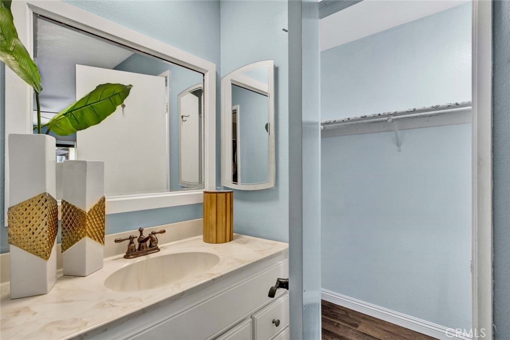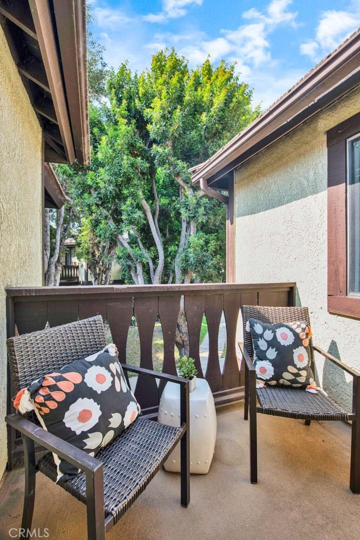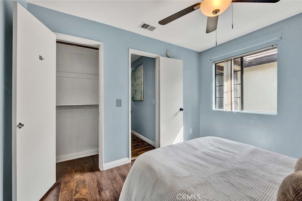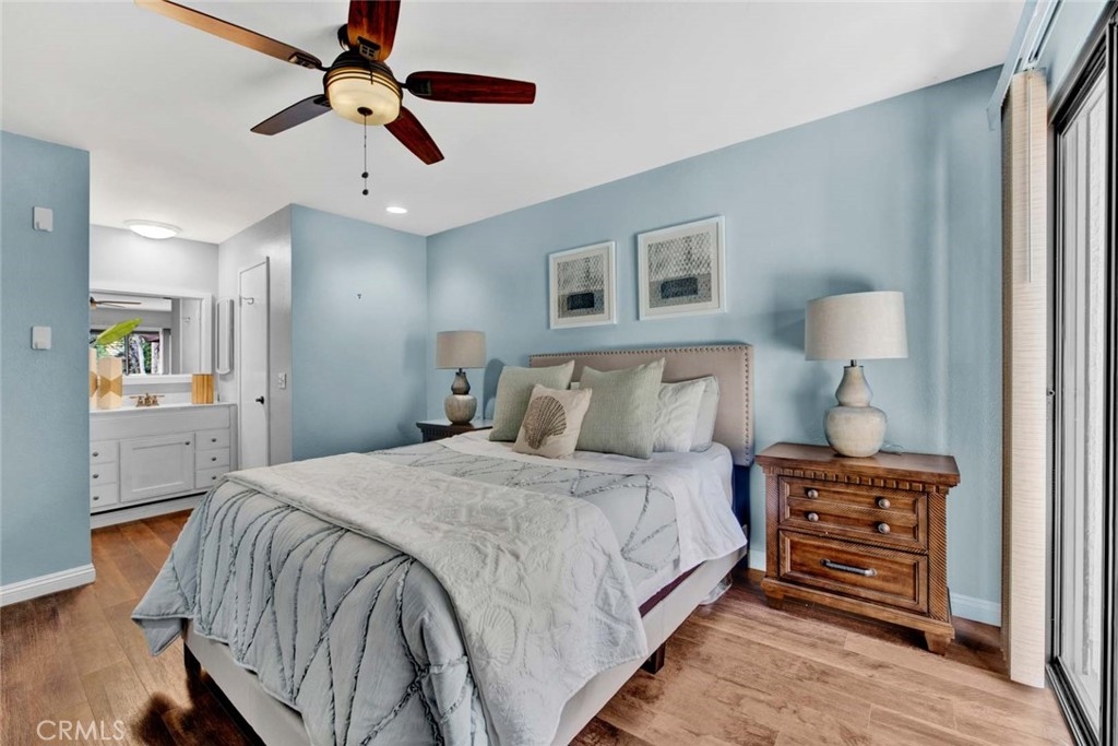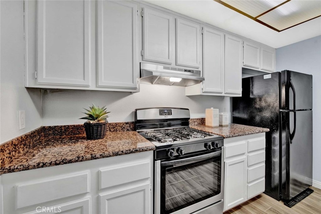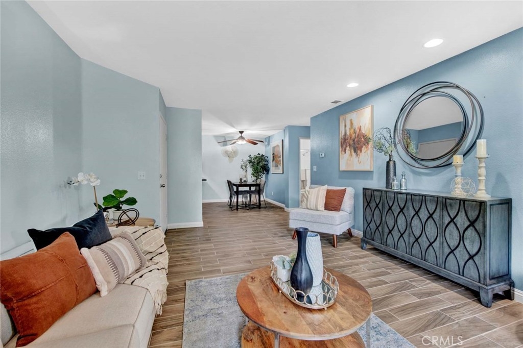 Beautifully Upgraded 2 Bedroom, 2 Bath Upper Unit with 873 Square Feet, a Detached 2 Car Garage, and 2 Balconies that Overlook the Beautifully Landscaped Greenbelts, Walking Paths, Tranquil Streams, and Waterfalls. It is Located in the Highly Desired Les Jardins Gated Community with 24 Hour Security in the Heart of Garden Grove. This Lovely Home Features Central A/C, Wood-Grain Porcelain Tile Flooring, Smooth Ceilings, Recessed Lighting, Designer Paint, and a Remodeled Kitchen that Includes Granite Countertops, Clean White Cabinetry, Stainless Appliances, Deep Chef Sinks with Designer Faucet, and a Breakfast Bar. Step Inside this Stunning Home to the Spacious Living Room with Slider that Opens to a Large Balcony that's Perfect for Barbecuing and Outdoor Dining. There is a Separate Dining Room Area with a Ceiling Fan and a Reach-Through Window to the Kitchen. A Convenient Laundry Closet for Stackable Appliances is Located off the Dining Room. Both Bedrooms have Wood Laminate Flooring and Ceiling Fans. The Primary Suite Features a Walk-In Closet, a Private Balcony, and an Ensuite Bathroom with Walk-In Shower that has been Upgraded with Wood-Type Designer Tile Surround and Clear Glass Door. The 2 Bathroom has a Tub/Shower Combo with Clear Glass Enclosure. Enjoy all the Amenities Les Jardins has to Offer with 2 Resort-Style Pools, Spa, Clubhouse, and Gorgeous Grounds with Mature Shade Trees. HOA Covers Trash, Water, and Common Area. Convenient access to Freeways 22, 5, and 57. Walking distance to Clinton Elementary and Santiago High School and a short drive to Santa Ana College. Near the Outlets at Orange, Disneyland, Steelcraft, Little Saigon, River View Golf Course, Shopping and Dining.