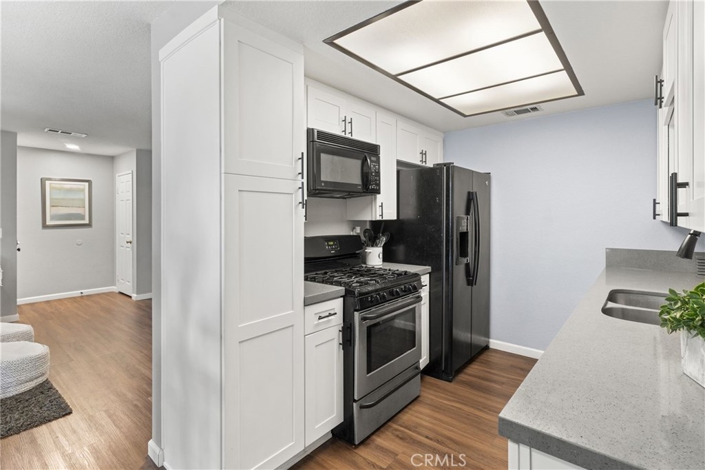 Welcome to this charming 1 bedroom, 1 bathroom end unit condo in a serene and peaceful neighborhood. Boasting an open floor plan, this residence offers a seamless flow between its upgraded kitchen, featuring modern appliances and ample counter space, and the large living area. The bathroom has also been tastefully upgraded, ensuring both comfort and style. Convenience is key with a two-car garage providing plenty of parking and storage space. This condo also features the luxury of in-unit laundry space. Enjoy the tranquility of this quiet community while still being within easy reach of local amenities and attractions.