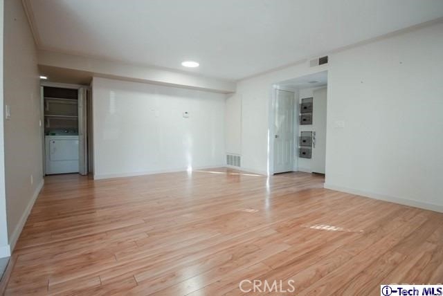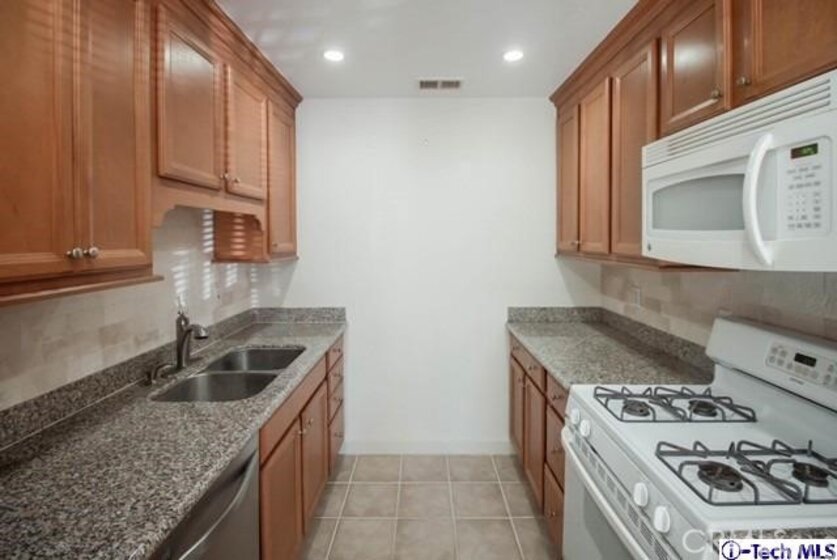 Have your leisurely or brisk walk in the gate and secured Les Jardins' (The Gardens) resort-like condo complex. But don't feed the ducks and turtles as you do. The cool down with calming spring water sound just outside the completely remodeled, move-in ready 1br/1ba condo unit with newer neutral colored paint, granite kitchen and bath countertops, newer windows and patio doors blinds, dishwasher, washer and dryer in unit and bath. Enjoy organizing and storing personal items in the detached oversized 2-car garage with newer built-in hanging cabinets and shelves, newer hanging cabinets in the dining area, and in the pull-out pantry cabinet. entertain guests or relax at the porch or do projects on the folding work takes in the garage. Just a stones throw away from a bus stop and the 5, 22, 405, 605 and 57 freeways, drive or take the bus to anywhere conveniently. Don't miss this rare gem! come, see, and make an offer soon!