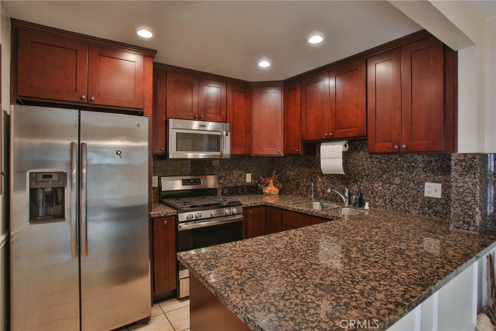 Welcome to Livingston Meadows! MUST SEE! GREAT LOCATION! Remodeled 2 story end unit condominium with 2 spacious bedrooms and 1.5 baths is ready for any new family. New double pane windows and sliding door. New paint, newer floors, new recessed lightings, new water heater and new ceiling fans. Recently updated kitchen with dining area and spacious side patio for entertaining guests or simply a place for enjoying your cup of coffee. Large attached 2 car garage with direct access and automatic roll up doors, plenty of storage space, and full size laundry hookups. The home comes with plenty of fruit trees including but not limited to quava, avocado, Asian plum and pomegranate. Conveniently located across the street from grocery supermarkets, shopping malls, restaurants, fast food, schools, parks, temples and churches. EASY access to fwy 22 and 405. This spacious home has a community pool and spa. Don't miss out on this opportunity to own this great property located in the heart of Little Saigon !
