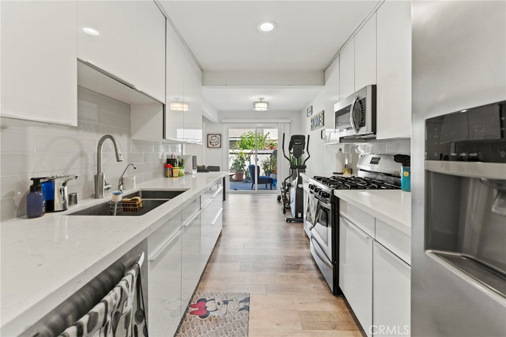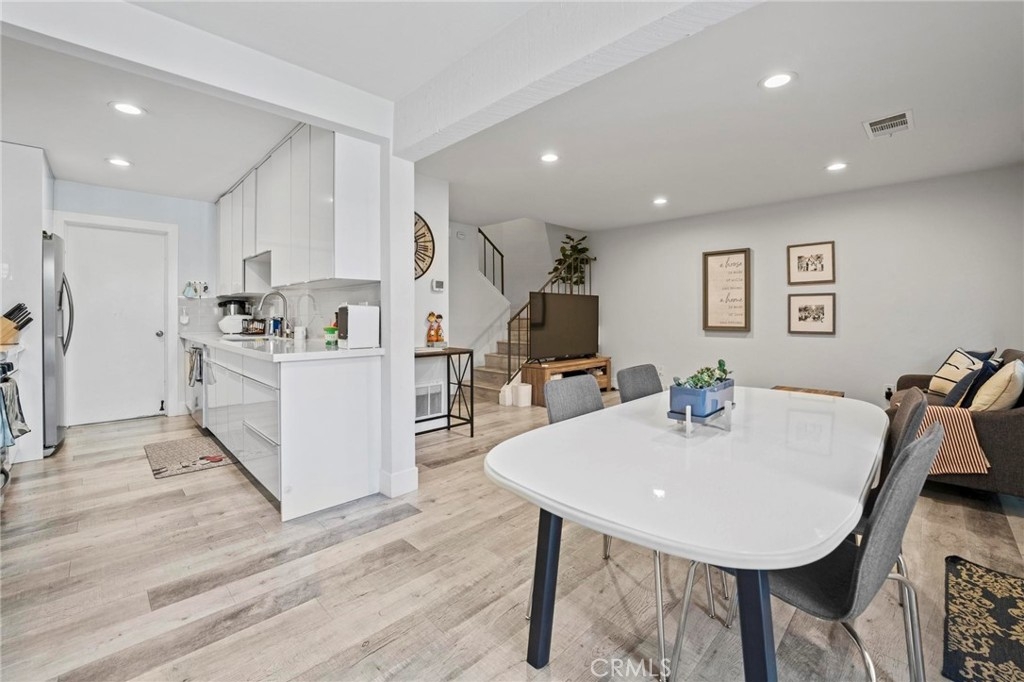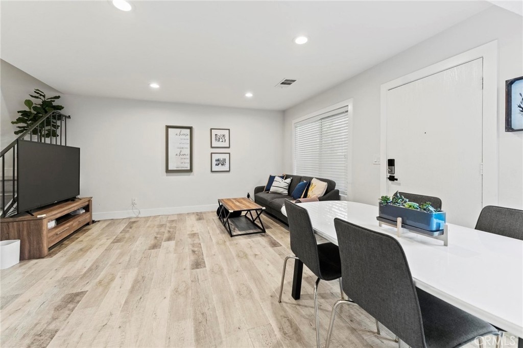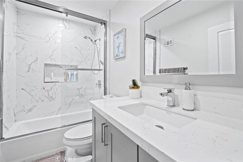 Welcome to an upgraded warm family style 3 bed 2.5 bathrooms townhome, complete with an attached 2 car garage. This townhouse features an open living room with lots of natural light throughout, adjacent dining room and kitchen, and sliding doors that open up to a patio perfect to BBQ and spend time with family. There is a private half bathroom conveniently located downstairs next to the closet. The upstairs features a large master bedroom with separate vanity area, upgraded standing shower with a designer touch, large walk-in closet. There are two other bedrooms and a full size bathroom located upstairs. All has been fully remodeled. The garage has space for 2 cars with plenty of storage including the washer/dryer area. And central air/heater, and water heater are in great condition. Very quiet and safe neighborhood with friendly neighbors. HOA covered for both water & trash. Additional parking is allowed in front of the garage or guest parking. Located in walking distance to very highly desirable award-winning schools (elementary, middle and high school), upscale shopping, restaurants, major freeways, parks, driving distance to the beach and minutes from the heart of Little Saigon.