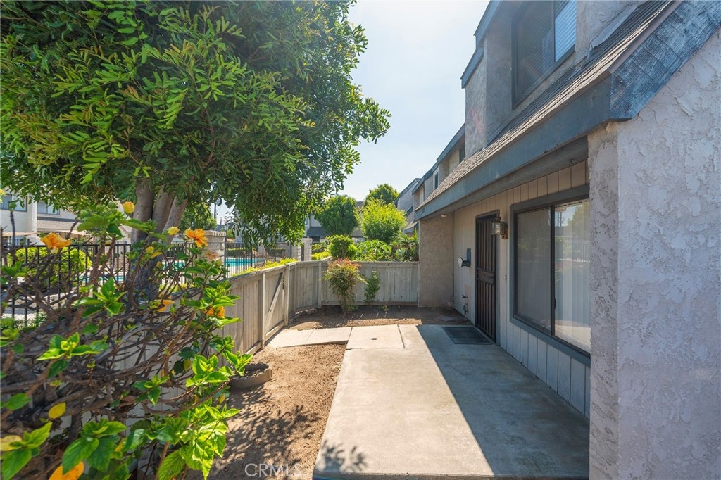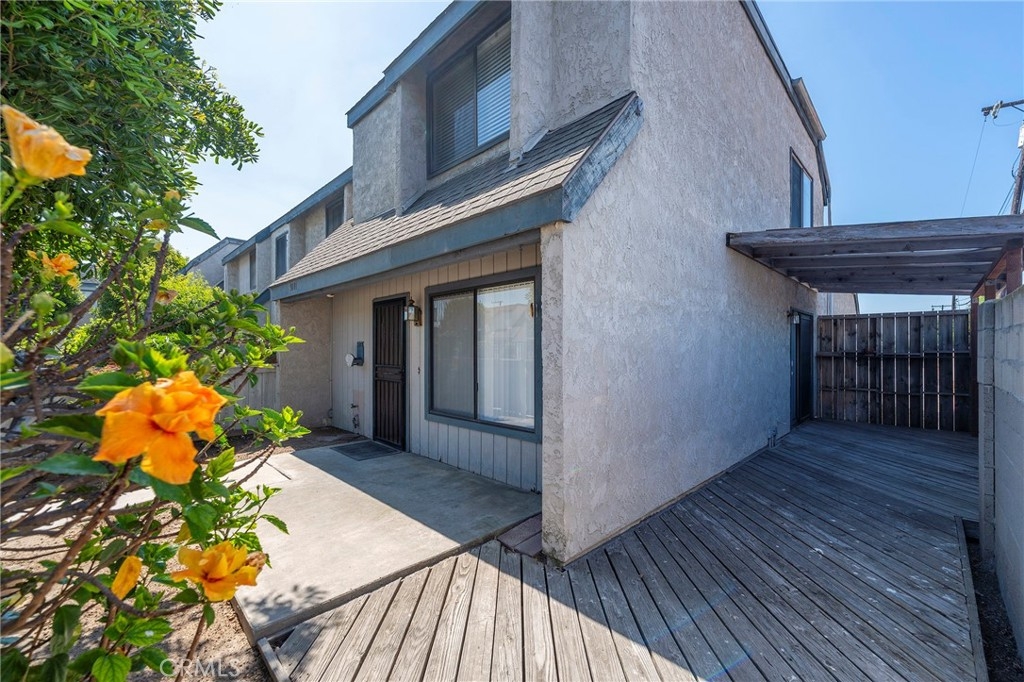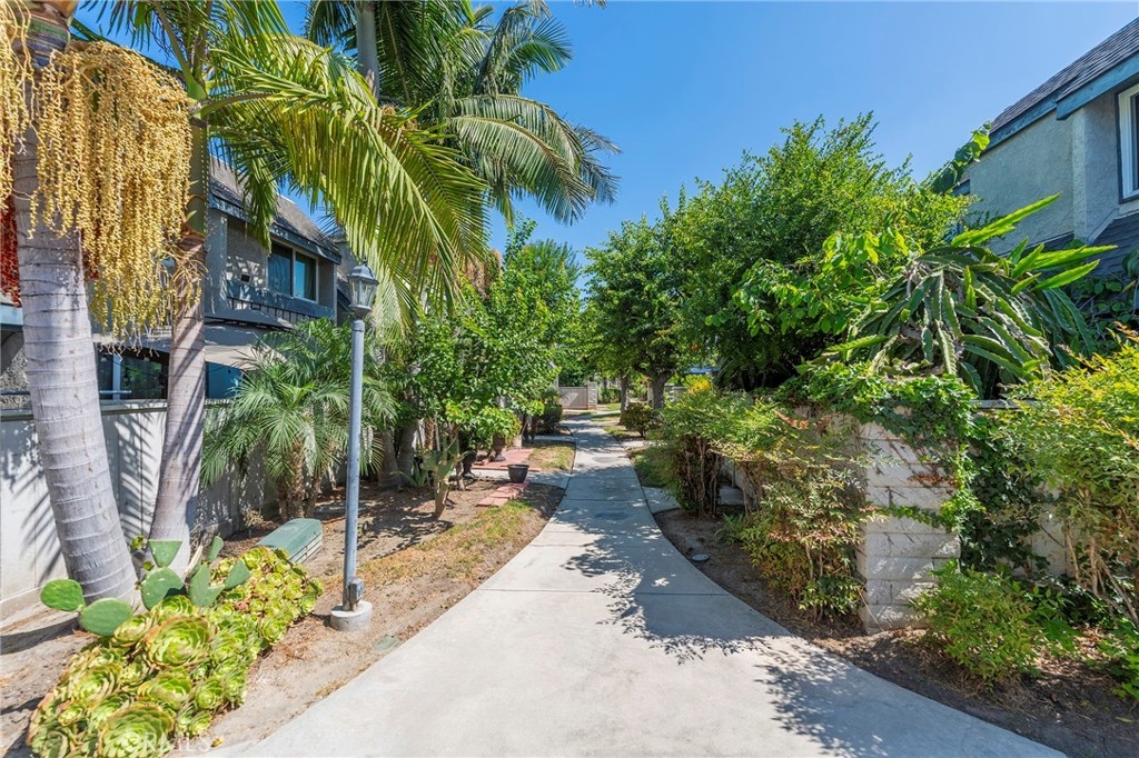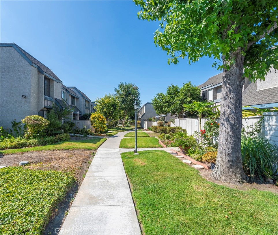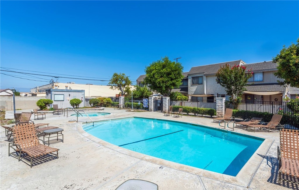 Fabulous Location~ A Very Private and Quiet END unit with Full Sparkling Pool View from the Front Door and the entire walkway leading up to the Entry Area of the unit. Easy Pull-In/Pull-Out, ATTACHED 2-CAR Garage in the Back, with DIRECT ACCESS into the Kitchen. Full size Washer/Dryer Hookups inside your Spacious Garage with ample storage. Large Sliding Glass Door on the side opens up to a Spacious and Private, Covered, Outdoor Deck. Tastefully UPDATED and REMODELED Kitchen with Brand New Oven and Upstairs Full Bathroom. Entire unit has just been FRESHLY Painted, ready for you to move right in. Brand New, Remote-Controlled, Modern Ceiling Fan and Window Treatment in Master Bedroom. Large secondary bedroom overlooking the pool. Livingston Meadows is conveniently located and within walking distance to many markets and grocery stores, Shopping Malls, restaurants, schools and entertainment. Within minutes access to Freeways 22 and 405. Wonderful mixture of Privacy and Convenience.
