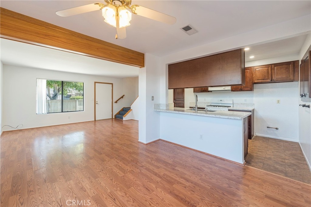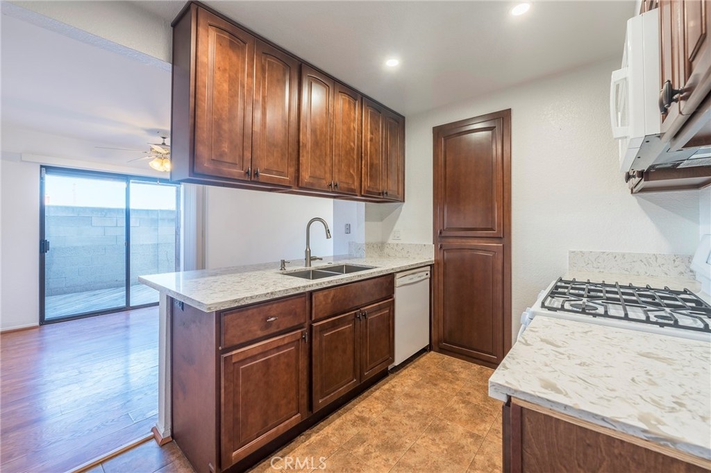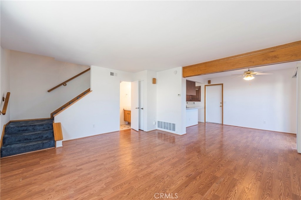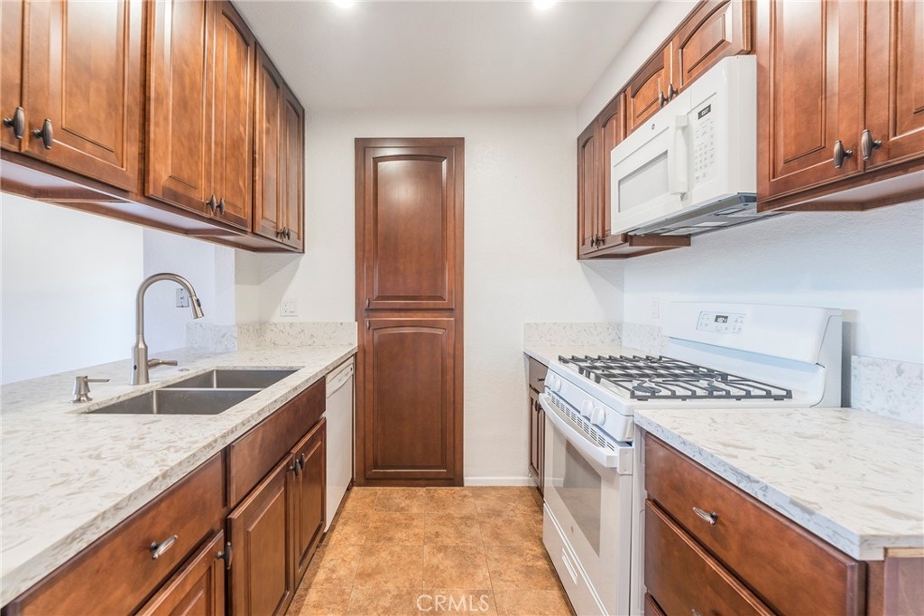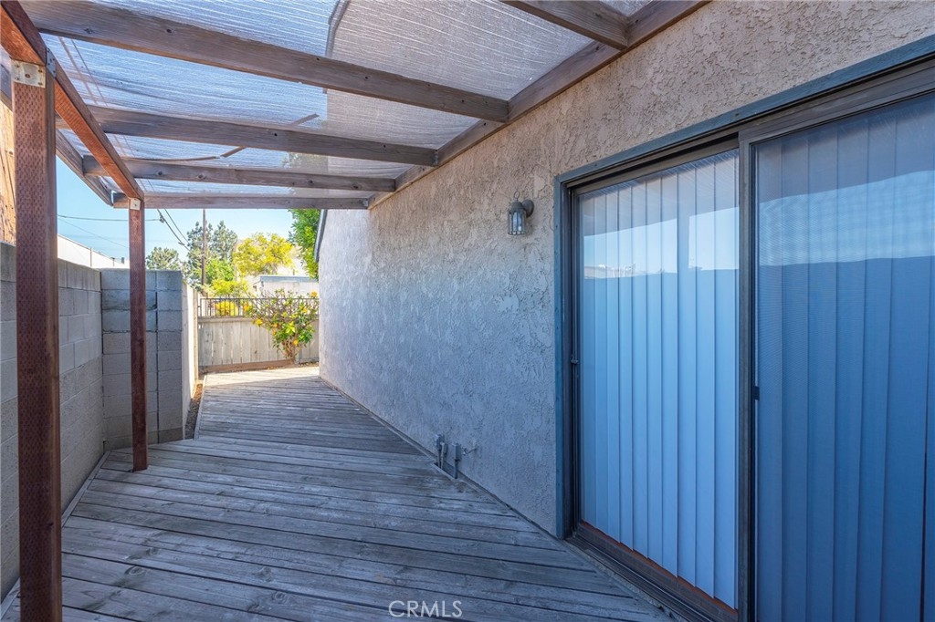 Fabulous Location~ A Very Private and Quiet END unit with Full Sparkling Pool View from the Front Door and the entire walkway leading up to the Entry Area of the unit. Easy Pull-In/Pull-Out, ATTACHED 2-CAR Garage in the Back, with DIRECT ACCESS into the Kitchen. Full size Washer/Dryer Hookups inside your Spacious Garage with ample storage. Large Sliding Glass Door on the side opens up to a Spacious and Private, Covered, Outdoor Deck. Tastefully UPDATED and REMODELED Kitchen with Brand New Oven and Upstairs Full Bathroom. Entire unit has just been FRESHLY Painted, ready for you to move right in. Brand New, Remote-Controlled, Modern Ceiling Fan and Window Treatment in Master Bedroom. Large secondary bedroom overlooking the pool. Livingston Meadows is conveniently located and within walking distance to many markets and grocery stores, Shopping Malls, restaurants, schools and entertainment. Within minutes access to Freeways 22 and 405. Wonderful mixture of Privacy and Convenience.