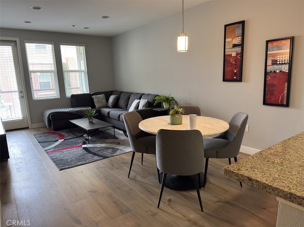 Prime location near Disneyland, Anaheim Stadium, restaurants, shopping...Beautifully upgraded 2 bedrooms. Walk-in closet, 1 full bathroom. Modern condo with laminate flooring (Title shows as 1 bedroom 1 bath but the office has a closet so it can be used as a bedroom). The kitchen opens to the dining area and living room. Kitchen has ample storage areas, countertop space, with refrigerator. Inside laundry (Washer & Dryer included). Living room with door to the balcony. 1 uncovered parking space #108. There is an additional parking space that could potential be available for $300 fee per year. Conveniently located near freeways. HOA includes water, sewer, insurance and trash, gated pool with jacuzzi, BBQ area and relaxing community lounge area. All furniture stay with the property. There will be security patrols. Dedicated walking guard to patrol the commumity grounds beginning November 1, 2025. Move in condition. Must see to appreciate.