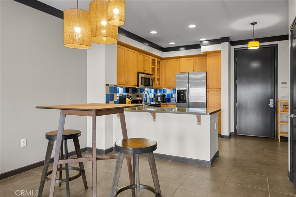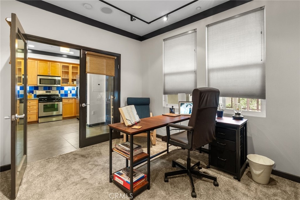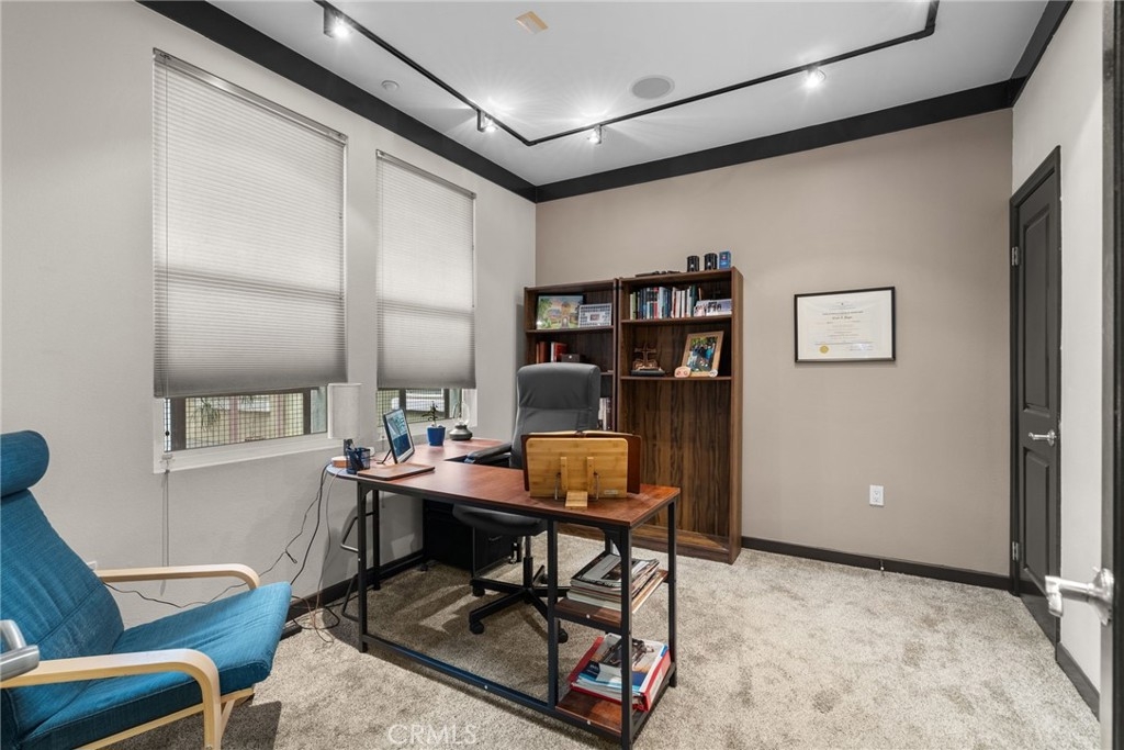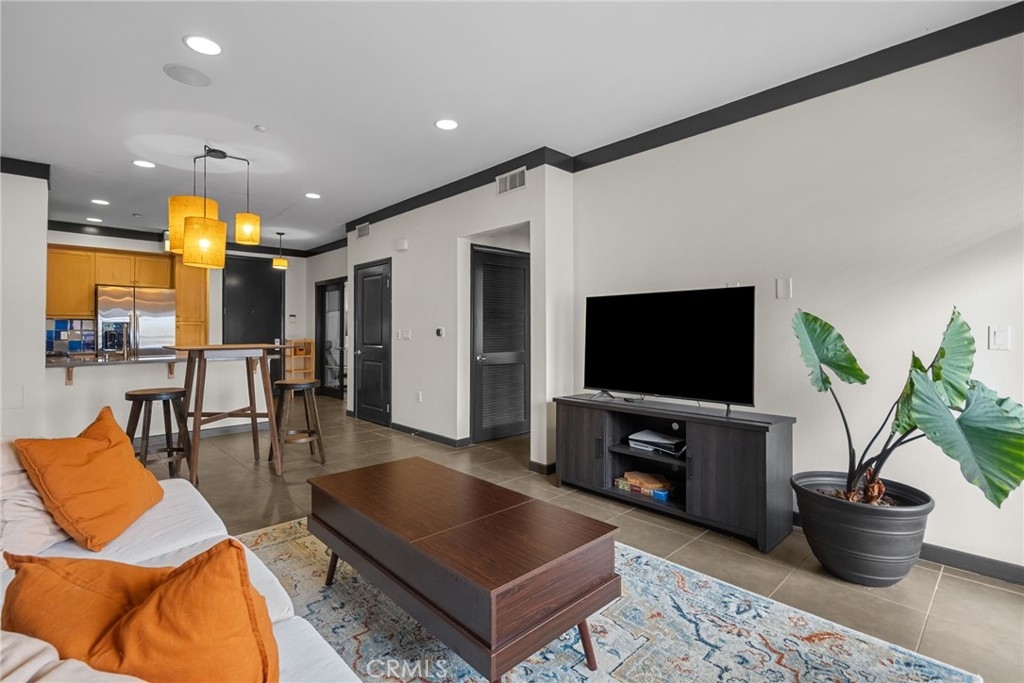 Motivated Seller!!! This beautiful condominium features 1 Office with a closet and a 1 bedroom and 1 full bathroom with approximately 864 square feet designed for both comfort and sophistication. From the moment you enter you will see an open-concept kitchen that leads to the living room, enjoy a bright and inviting living space with a functional layout. The kitchen boasts stainless steel appliances, lots of storage areas as well as countertop space with lighting under cabinets. Elegant crown molding throughout the condo, pre-wired with Cat5 & cable connections. Step outside and take advantage of the community amenities including a sparkling pool with jacuzzi & BBQ area. HOA includes insurance, Water, Trash & Sewer paid, gated, and a relaxing community lounge area. Definitely a great opportunity you don't want to miss out on!!! Location location location, near Disneyland, Great Wolf Lodge, Anaheim Stadium and lot's of restaurants to enjoy. There is an additional parking space that could potentially be available with the first right of refusal for a $300 fee per year.