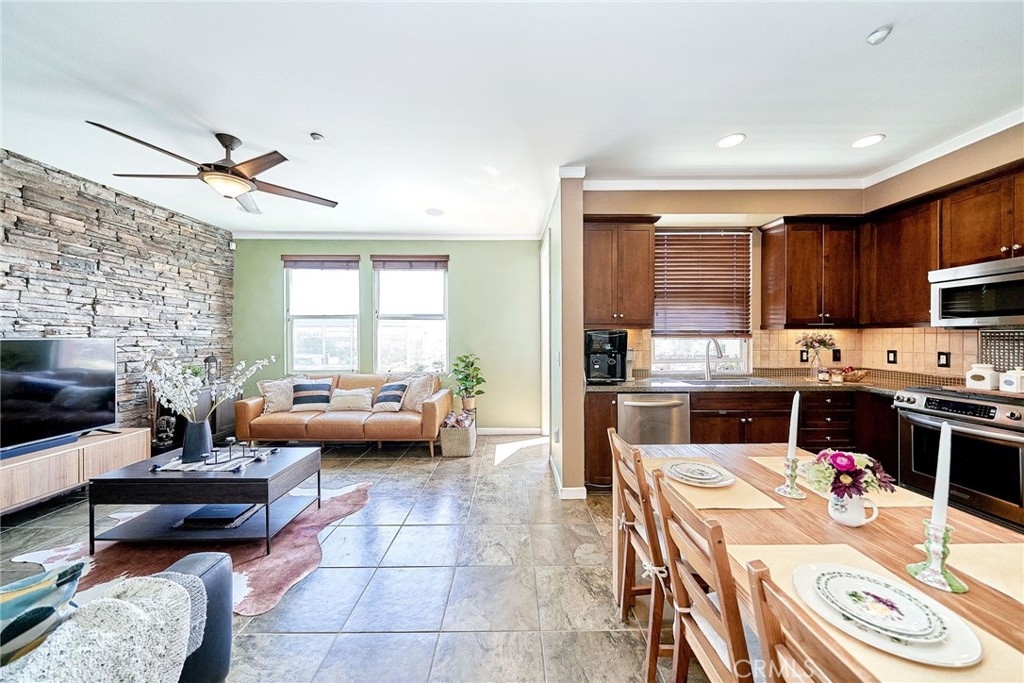 This Beautiful Two-Story Penthouse Located on The Top Floor is a Must-See! Located in the beautiful gated community of Lotus Walk, it is an upgraded 2 bedroom 2.5 bathrooms modern condo with new tile flooring. This home is turnkey with 9-foot ceilings, recess lighting, and built-in speakers in the living room, kitchen, and master bedroom. Pre-wired with cable connections, and a large walk-in closet in the master bedroom. This home has charming and collectible light fixtures and newly installed luxury faucets. The entryway is lined with an elegant tile floor. The fully upgraded kitchen is fitted with granite counters, stainless steel appliances (included), and dark-stained cabinetry. It opens to the living room and dining room. The living room contains a balcony that allows for an outdoor seating area with a Penthouse city light view! There is an indoor laundry room (washer & dryer included). The master bedroom also leads out to a balcony through double doors that provide a gorgeous view of city lights. This penthouse has a total of 3 parking spaces with room for storage and additional community parking space is already included until the end of Oct. and it can be extended. It is conveniently located near the 22, 5, and 57 freeways. The monthly HOA includes water and trash. The wonderful community amenities include an abundance of guest parking, a well-maintained private pool and spa, a lush green courtyard, and an outdoor seating area. Disneyland Resort, Anaheim Stadium, The Great Wolf Lodge, and various dining, entertainment, and shopping are just minutes away from the prime Garden Grove location! Check this beauty out at the open house and appointments are always available.