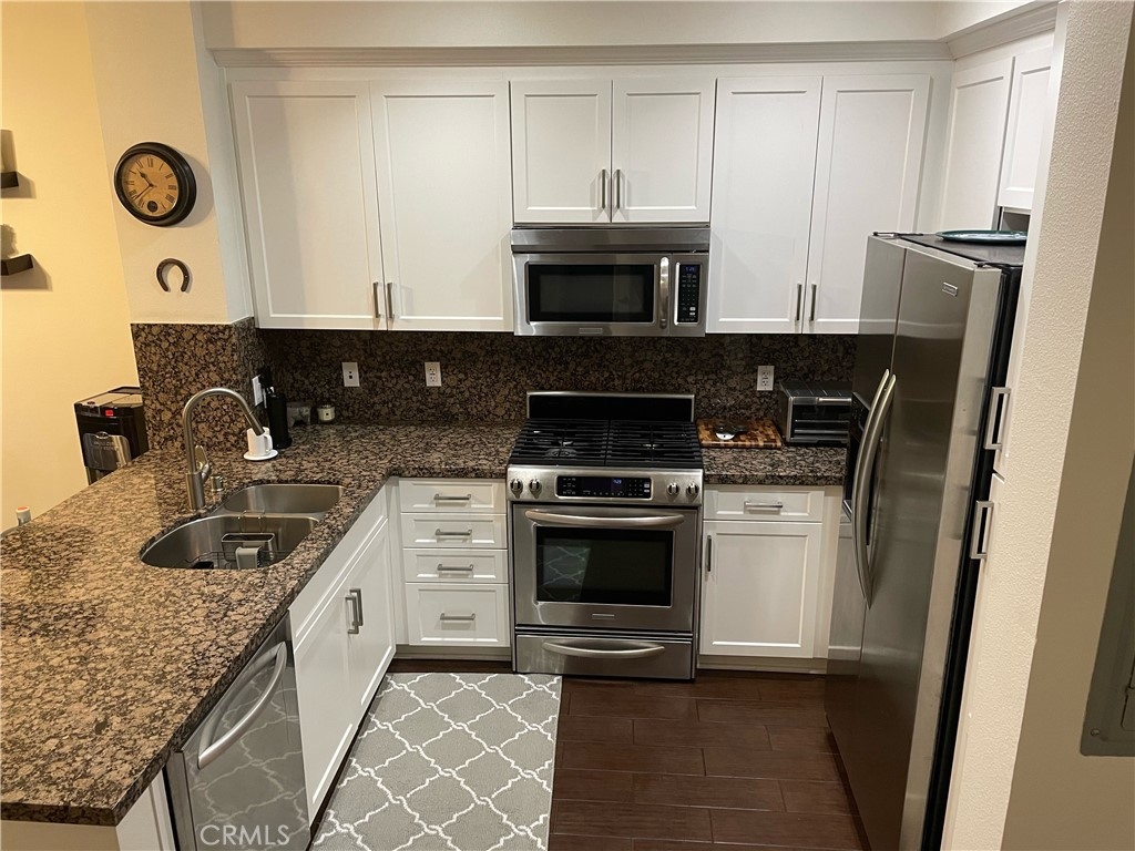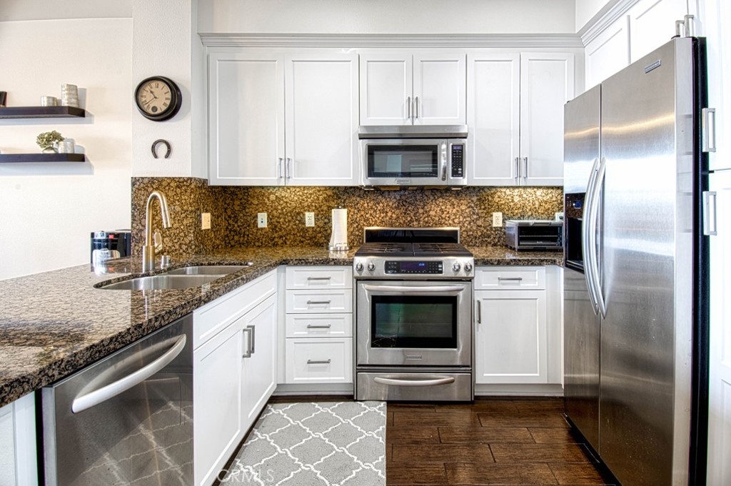 Prime Garden Grove location. Views of the Disneyland fireworks every night and just across the street from Great Wolf Lodge. Inside, this Penthouse condo is fully upgraded with wood-look tile flooring, granite counter tops, new kitchen cabinets in 2020, and secure parking and storage area. Conveniently located to the 22, 5, and 57 freeways.