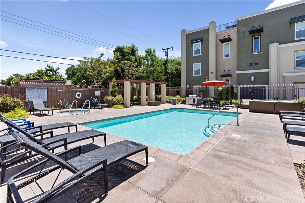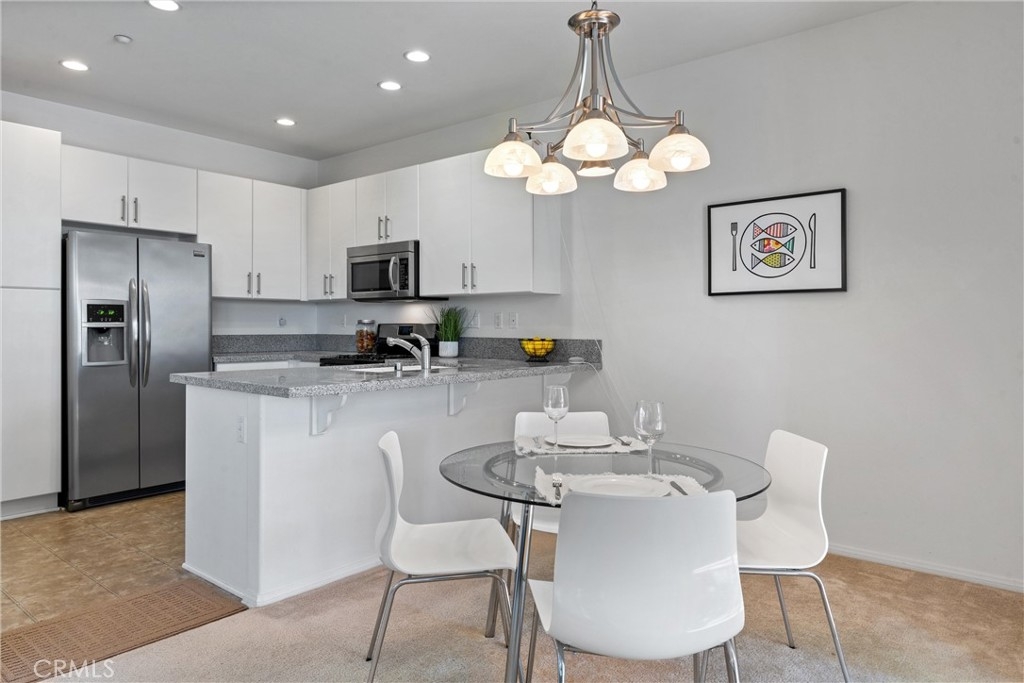Welcome to the highly desirable & centrally located community of Lotus Walk in Garden Grove. This tri level end unit features a bright & airy open floor plan that has an attached 2 car garage already equipped with 220v outlet for your electric vehicle. The entry features a nice sized area that could be utilized as a work space or a seating area. The sun filled middle level features a spacious living room open to the dining room, kitchen & balcony. The kitchen has tasteful white cabinets & granite countertops along with a full stainless steel appliance package which is all included. The upstairs level features the large master bedroom with dual vanity & shower & walk in closet. The secondary bedroom also features an en suite bathroom. Conveniently located between the bedrooms is the laundry closet & plenty of storage space. The community has a resort style pool, jacuzzi & BBQ area. The HOA dues include the water & trash. This gem is centrally located next to multiple freeways, Disney, Costco, restaurants & so much more.