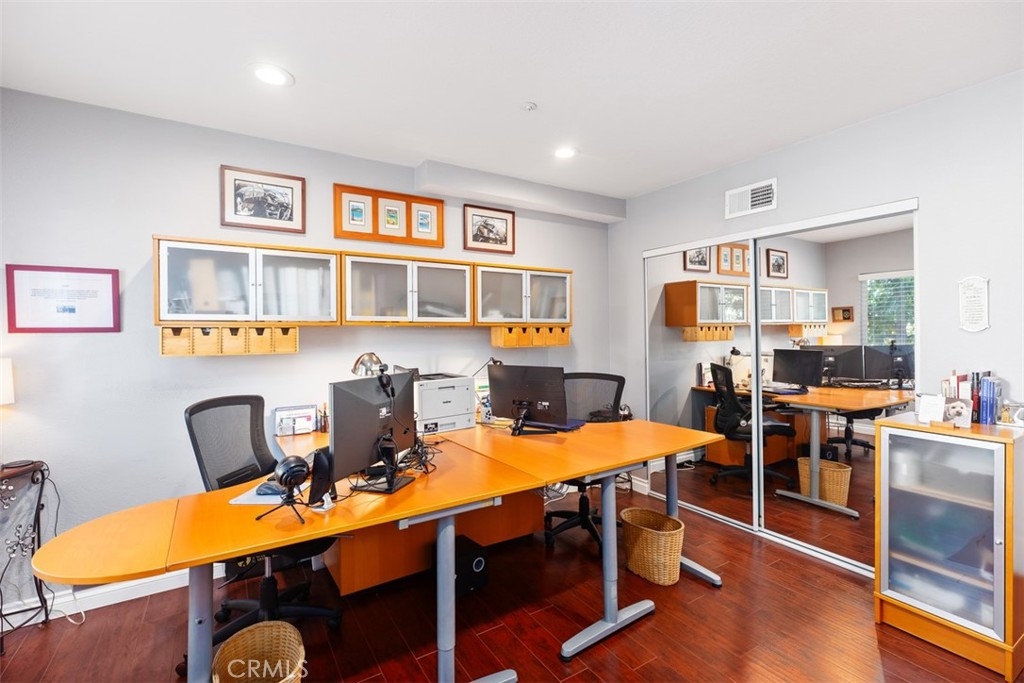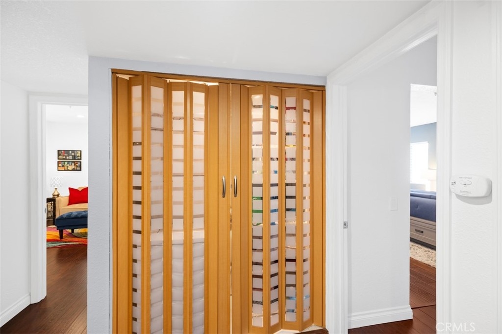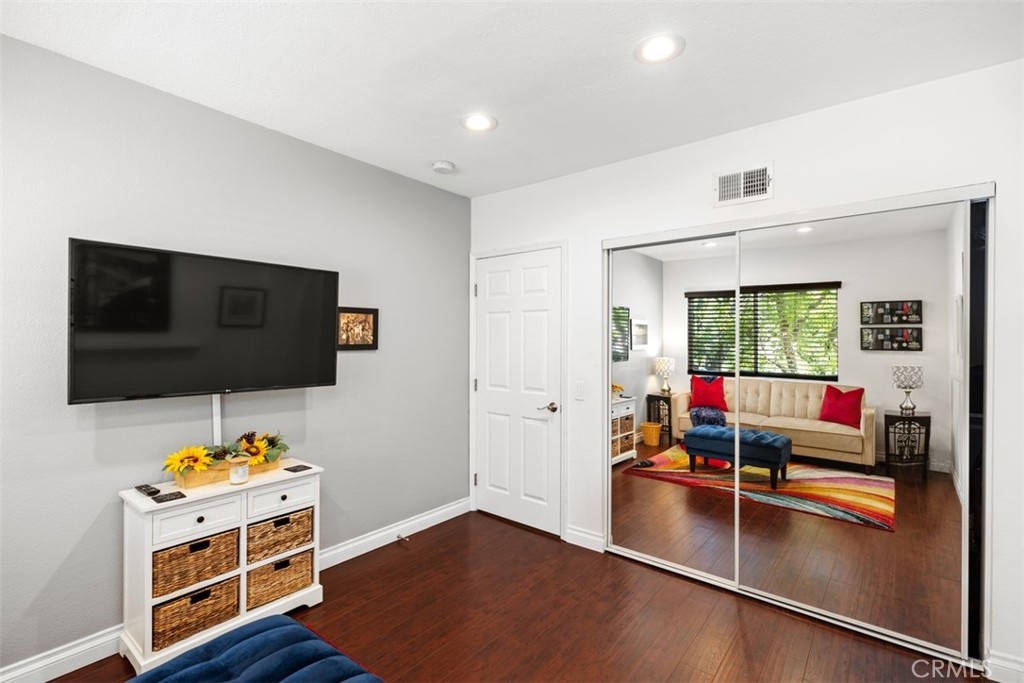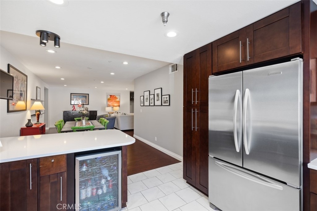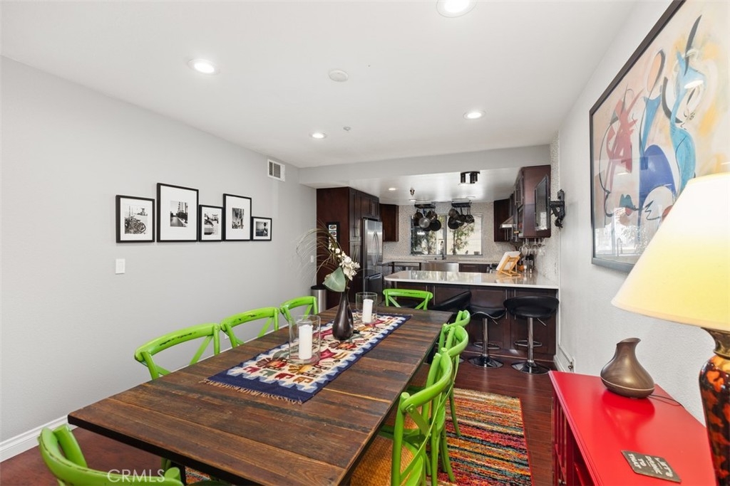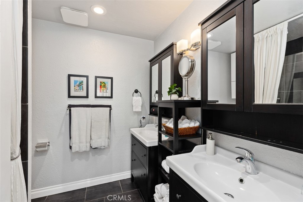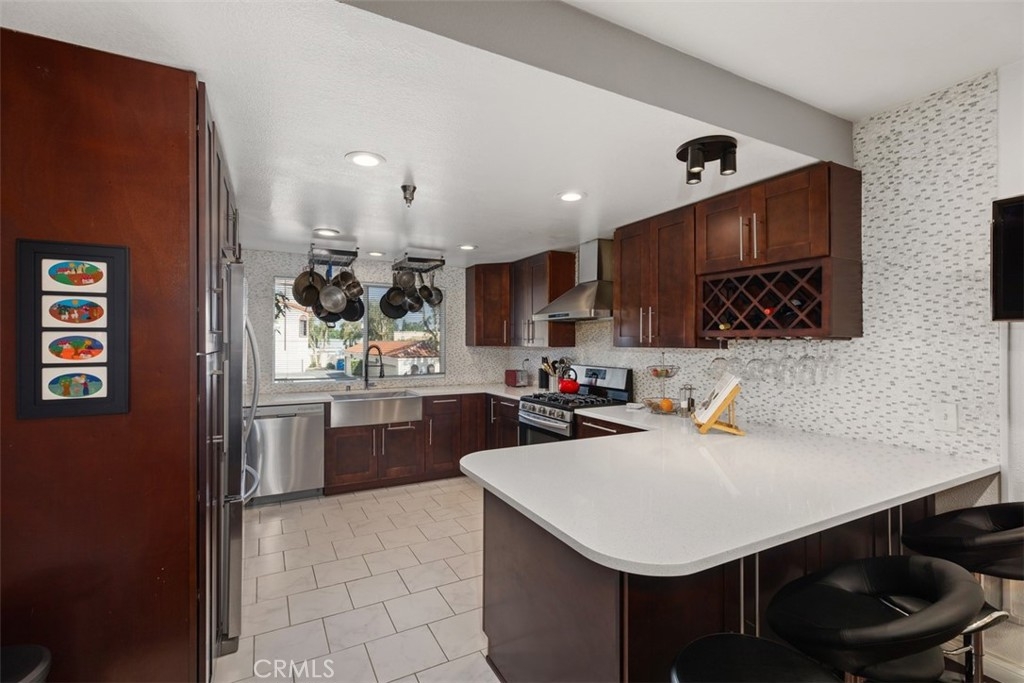 Instantly Appealing! Lovely, Single level, 3 Bedroom, 2 bath condo, located in the Martinique Royale community. This Beautiful end unit is surrounded by natural light and has been extensively renovated--the largest floor plan in a small community of only 22 homes. Approximately $75,000 in upgrades within the last 7 years---All new vinyl dual pane windows, renovated kitchen and bathrooms, HVAC system (3 yrs old), scraped ceilings, raised baseboards, wood laminate flooring throughout, recessed lighting with programmable Lutron dimmer switches, upgraded electrical panel + More! Spacious, Modern kitchen with breakfast bar, quartz countertops, mosaic backsplash, espresso finish cabinetry, Stainless steel appliances, deep stainless farmer’s sink, and hanging pot racks. Refrigerator and wine cooler are included! Both bathrooms have been updated with new toilets, vanities, lighting, plumbing fixtures, and tile flooring. The primary bathroom has a tile enclosed shower and jetted tub combination, and secondary bathroom has a tile enclosed walk-in shower. You will love this open concept floor plan, with Greatroom and separate dining area. Convenient indoor laundry with Washer and Dryer included. A private patio with Saltillo tile, lighted ceiling fan and views of the park is perfect for entertaining and barbecuing. An added bonus is the oversized, private storage room w/shelving. Secure, gated subterranean parking with 2 assigned parking spaces and visitor parking. Excellent location across from the 6.3 Acre Village Green Park, Tower on the Green and walking distance to Historic Main Street Garden Grove, Garden Grove High School, Public Library, Costco, Coastline Community College, restaurants and shopping. Low Association dues include Pool, Spa, Trash and all water. A Great Buy for the Money!