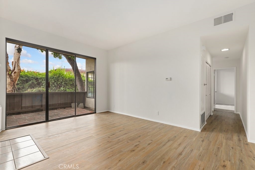 It's nice to be able to just move in to your new home, right? Well, here it is! It's an easily accessible, street level, one story appointed with all the modern features you want! Brand new Luxury Vinyl Plank floors, new quartz countertops and freshly painted walls. The smooth ceilings are extra high and add to the spacious feel that brighten the living spaces. The focal point of the living room is the cozy fireplace accented with built-ins for display or storage. This space is enhanced with a slider to the private patio for ease of outdoor entertaining or relaxing. The adjacent kitchen has fresh, white cabinetry and is upgraded with a new quartz countertop for a fresh feel to this open and well thought out space. It comes with a breakfast bar as well as dining area! Well situated, it gets abundant natural light all day and no neighbors across from you. Down the hall is the convenient full size laundry closet with a gas dryer connection. The primary bedroom is generously sized, has an en-suite full bath and it's own patio by way of the sliding door. Make this your quiet place/retreat to find at the end of a busy day! There's also a walk in closet. The secondary bedroom is also good sized and has a full closet. There's more storage for linens and other household items. You get your own two car garage and there's parking right outside your front door! This gated community features a pool, spa, and tennis courts. It's close to the new Rodeo 39 for trendy restaurants and shopping. Easy freeway access, too!