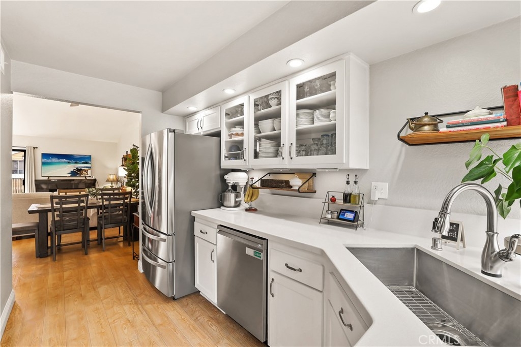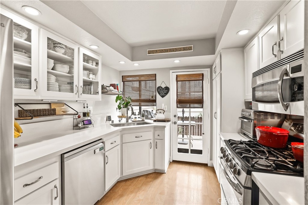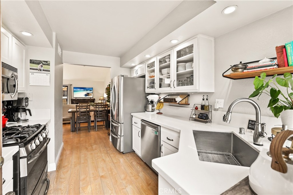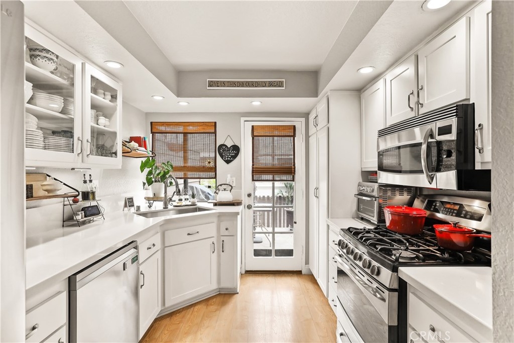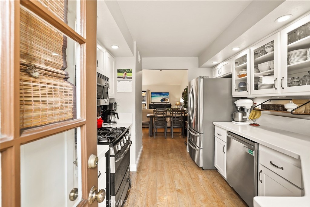 Welcome to your new home in the gated community of Meadow Brook Village, located in the heart of Garden Grove. Built in 1984, this beautifully updated townhome stands out with modern upgrades, including a fully remodeled kitchen — all at an attractive price point! Featuring 2 spacious bedrooms and a well-designed layout, this home boasts vaulted ceilings, recessed lighting, ceiling fans, and fresh paint throughout, with a convenient main-floor bedroom and full bathroom perfect for guests. An attached two-car garage with built-in cabinets provides ample storage, while both a private balcony and a cozy deck offer ideal spots for summer barbecues and relaxing to the tranquil sound of the community’s babbling creek. Inside, stay comfortable year-round with central heating and air conditioning, or enjoy cozy evenings by the fireplace. Meadow Brook Village offers resort-style amenities including a sparkling pool, relaxing spa, and tennis courts just steps away. This lovingly maintained home is ready for a lucky new owner to enjoy everything it has to offer. Don’t miss this rare opportunity!