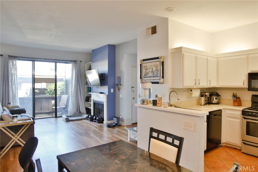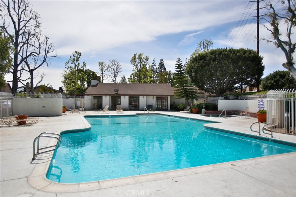Nice Looking first-floor unit in Meadow Brook Village! This spacious 1-bedroom condo features a large kitchen and living room with an open and spacious floor plan that allows plenty of natural light to flood in through the sliding doors. Perfect for starting families, this unit comes with everything you need including an inside washer and dryer, air conditioner, double sinks in the master bathroom, bigger kitchen area with stove and microwave, fireplace, ceiling fan, and much more. The bedroom is large with plenty of closet space and has access to the balcony. Recently re-painted with wood flooring, tiles, and carpets. This unit also comes with two assigned carports. The community features a pool, spa, tennis courts, and several peaceful streams and lakes.