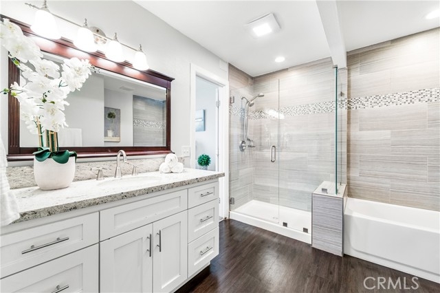 Welcome to 10121 Montecito Plaza, a charming 2 story home nestled in Garden Grove, CA. This inviting two bedroom home features a spacious kitchen, separate dining area and large living room. The living room features a large sliding glass door leading you to a private shaded courtyard and detached 2 car garage. In the garage you will find extra storage space, laundry hookup and additional parking. The home also features laminate flooring, smooth ceilings, recessed lighting, central heat & air conditioning, plantation shutters and lots of linen storage. Make your way to the primary suite showcasing dual closets and en suite upgraded bathroom with a separate tub and shower. This home is located in the Montecito Plaza Homes Complex which offers a sparkling pool, relaxing spa and club house. It is conveniently located near shopping, restaurants, movie theater, parks, freeways and the award winning Garden Grove Unified School District. Don’t miss this opportunity to live in this move-in ready home!