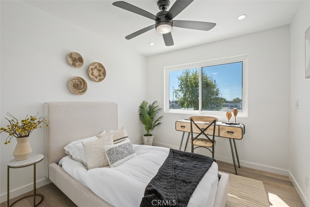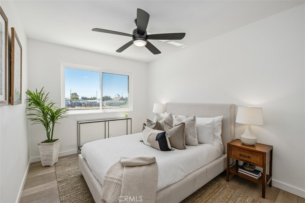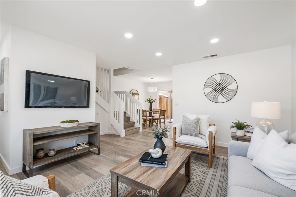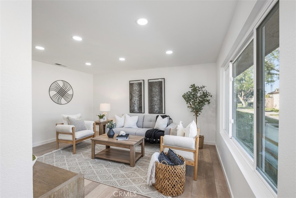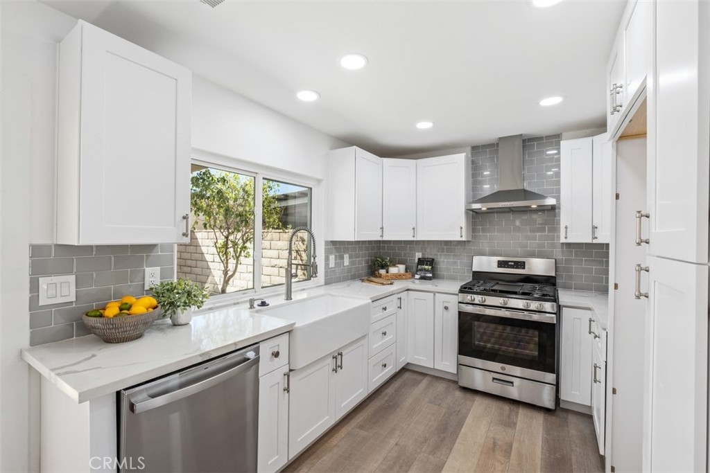 Upmarket interior design and modern functionality unite in this completely reimagined gated community home. Step into the light-filled open floor plan to find several designer features, including beautiful High-end Vinyl wood flooring and picture windows framing pool and greenbelt views throughout. The kitchen is ideal for hosting and features new stainless-steel appliances, custom Shaker cabinetry, quartz countertops, and an adjacent dining room with glass sliders leading to the remolded back patio, perfect for indoor/outdoor living. You will find three spacious bedrooms with a full bathroom and a second bathroom for your guests. Enjoy endless sunsets on the spacious common grounds with several walking paths for you and your best friend (Dog). The community features include a pool, spa, green belt, pathways all around the complex. Close to schools, restaurants, and access to multiple freeways.
