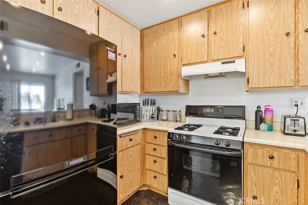 You'll be delighted and surprised at the view this condo enjoys over the rooftops of the surrounding homes - the interior feels so much more spacious when you have a sweeping urban outlook to enjoy. In addition, this condo is an end unit on the outer edge of the complex, which provides more privacy than most - you feel almost detached from the central parts of this security-gated complex. Finally, there's an opportunity to employ some of your personal creative touches, perhaps a new color scheme or window coverings of your own choice - the small amount of low-cost cosmetic work required will result in a considerable increase in value. And even better, the seller might provide a credit! The HOA is impeccably maintained, the monthly fees are lower than many, and your water is included. Internally, the open plan living area features a breakfast bar and a generously sized dining area separate from the living room. The living room features recessed lighting and a sliding door to the balcony. Yes, it has two full bathrooms, an interior laundry area, and another balcony off the main bedroom. Perhaps the only other feature you could wish for is a two-car garage? Then your wish is granted! However, there's one more feature that you will find most attractive - the price! Excellent properties with the combination of features of this one are in short supply; look no further - welcome home!