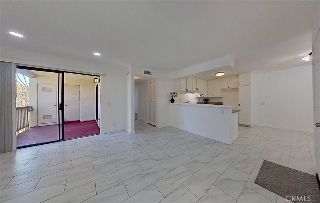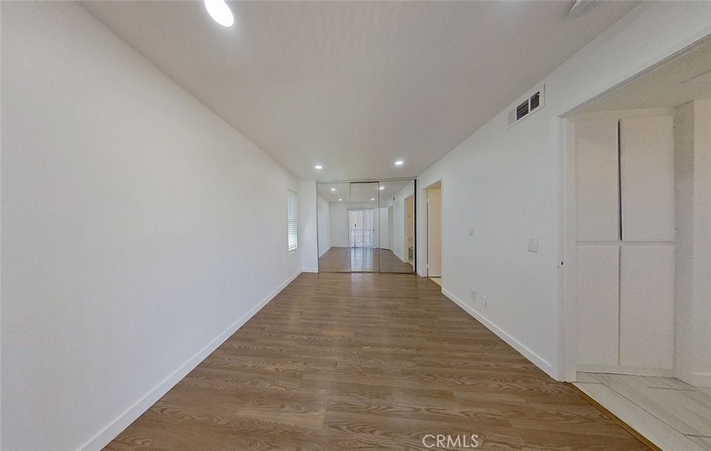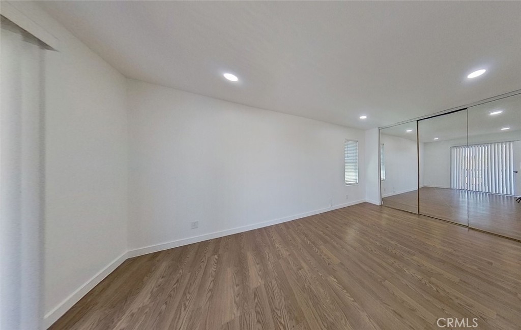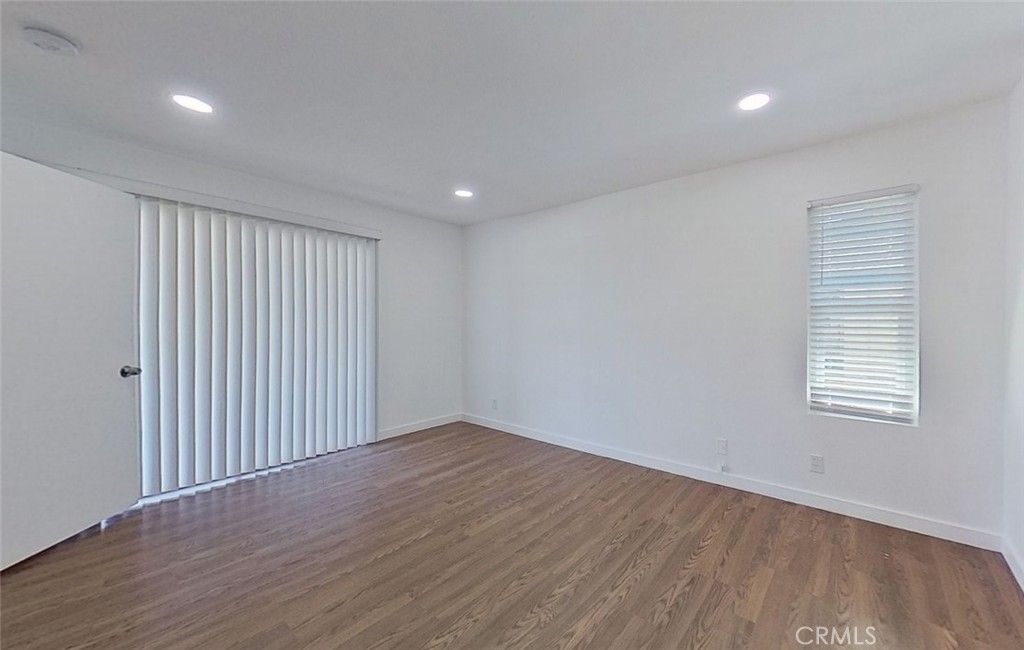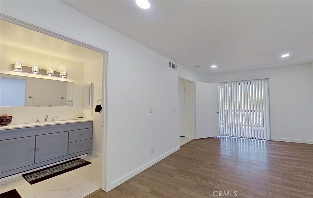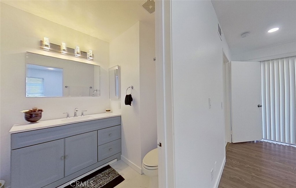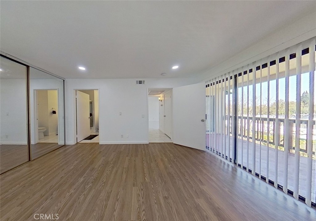 Fully remodeled and updated contemporary living. Bright and spacious 1 bedroom and 1 bathroom upper/end unit condo. This home offers gorgeous newly installed matte porcelain tiles in living room and dining room. New laminate flooring in bedroom. New paint, smooth ceiling with recessed lights, window blinds, and dishwasher. The open concept granite countertops kitchen offers generous breakfast bar, direct view of living room and a separate dining area. Remodeled bathroom includes sliding shower doors, shower in tub, modern vanity and porcelain tiles. Both bedroom and living room have easy sliding doors for direct access to spacious balcony with mountain views. There is also a separate room for washer and dryer. In addition, at this incredible value, you get spacious private 2 car garage and still have more available spaces left for storage. Home is equipped with A/C system and family can stay cool outdoors with community pool. Home is located on the outer edge behind nearby security gate and it offers plenty of privacy. HOA has done an incredible job keeping it well maintained at a low monthly association fee and your water and trash are included! Plenty of parking spaces for guests on premise. It is conveniently located close to Woodbury Park, schools, and major freeways. It is still within reach to own a place called home.