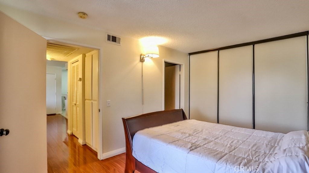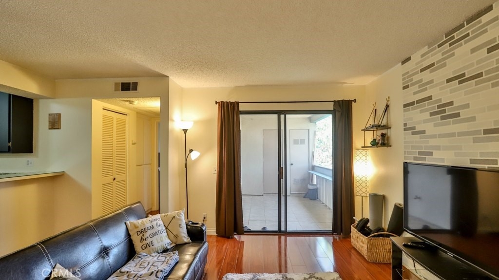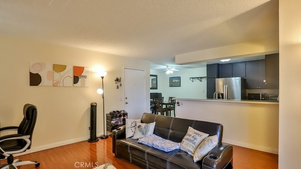 Cozy and beautiful upgraded upper unit condo with open floor plan in a gated community. Upgraded granite kitchen counter top with wood floor throughout the house. Large balcony for overlook the street and can sit and relax for family enjoyment. Washer and dryer inside the unit, AC central, newer water heater. This home has spacious detached two car garage. HOA pays for water, trash, and insurance. This home has everything to offer, with this price and low interest rate, it is better to own than rent.