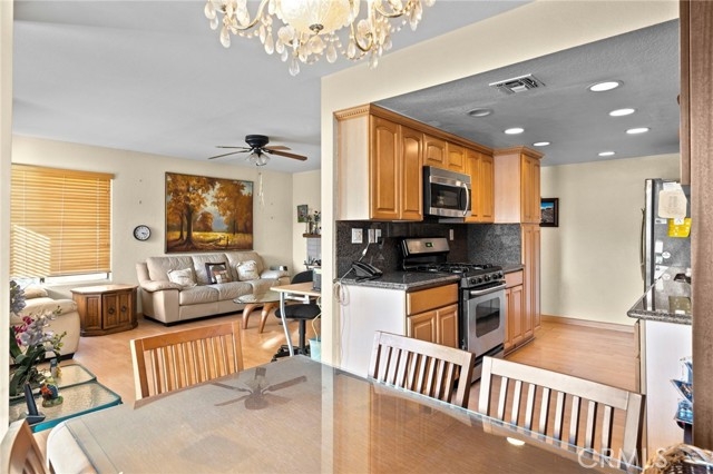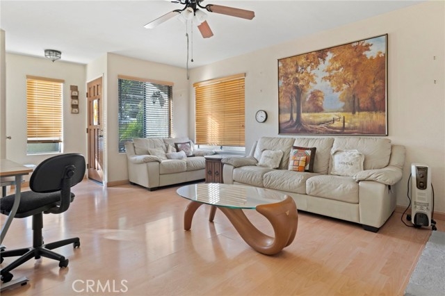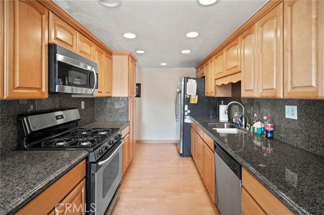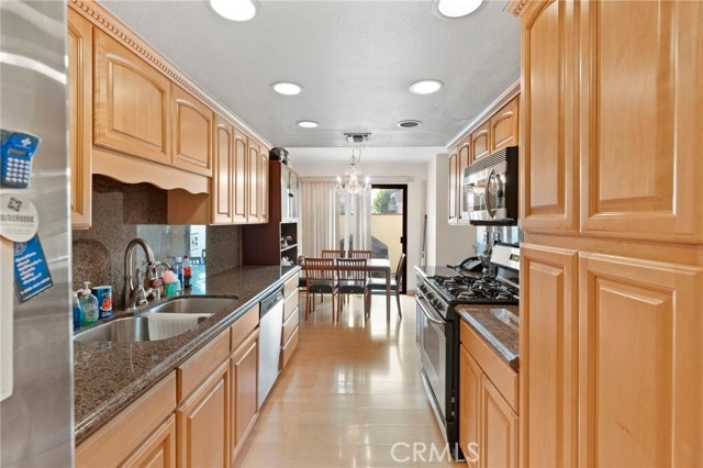 Welcome to this stunning 2-story condo located in a desirable gated community in Garden Grove. This property offers three spacious bedrooms upstairs, making it the perfect home for a growing family or those who need additional space for an office or guest room. As you enter the home, you'll immediately notice the expansive living room, perfect for relaxation or entertaining guests. The open floor plan leads to a beautifully upgraded kitchen, complete with quartz countertops and modern appliances that will inspire your inner chef. Enjoy your morning coffee or a quiet evening on the covered balcony, overlooking the lush greenery of the community. The home features 2.5 bathrooms, including a luxurious master suite with a walk-in closet and a double vanity. For your convenience, the laundry is located in the direct-access two-car garage. Keep cool in the summer and cozy in the winter with central AC/heat. This exquisite condo also features stunning vaulted ceilings that create a spacious and open atmosphere, allowing for natural light to fill the home. The laminate flooring throughout the home provides both durability and style, and the recessed lighting highlights the home's charm and modern upgrades. This community has a low HOA, making it an ideal place to call home for those seeking affordability without sacrificing amenities. Take advantage of the perks of this gated community, including guests parking, and enjoy the peace of mind and privacy it offers. Located in a prime location, this condo is just minutes away from Rodeo 39 shopping, dining, and entertainment options, making it the perfect location for those who love the hustle and bustle of city life. This home is perfect for those seeking both comfort and style, with easy access to everything Garden Grove has to offer. This desirable and top-notch unit will not last long, schedule a showing today!