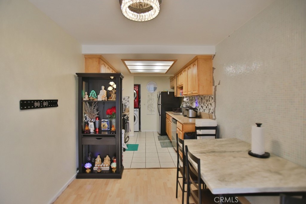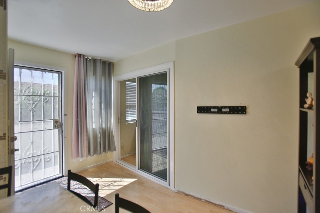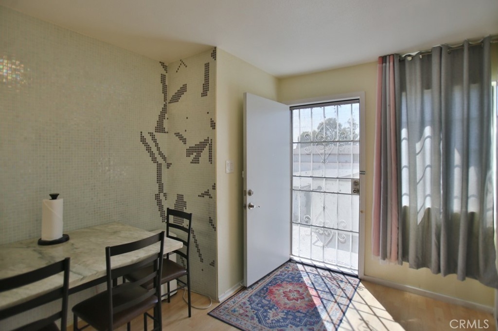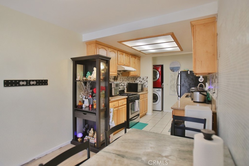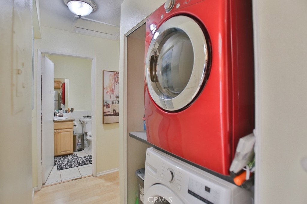 Welcome to this delightful upper unit in the serene, gated community of Spring Garden Villas. This 2-bedroom, 1-bath home offers a blend of comfort and convenience. Complemented by laminate wood and tile flooring throughout. The recently remodeled kitchen features modern updates and the unit includes convenient laundry hookups. The generously sized bathroom offers dual access from both the hallway and the master bedroom. Enjoy the added benefit of a two-car detached garage with an automatic door opener and plenty of storage space. Situated towards the end of the complex, this unit overlooks lush greenery and is conveniently located near the garage. Additionally, the home benefits from low HOA dues cover Trask, water and out site. Experience the best of peaceful living with easy access to community amenities. this is Great for First time buyer with Garden grove assistant program up to 110k down payment.