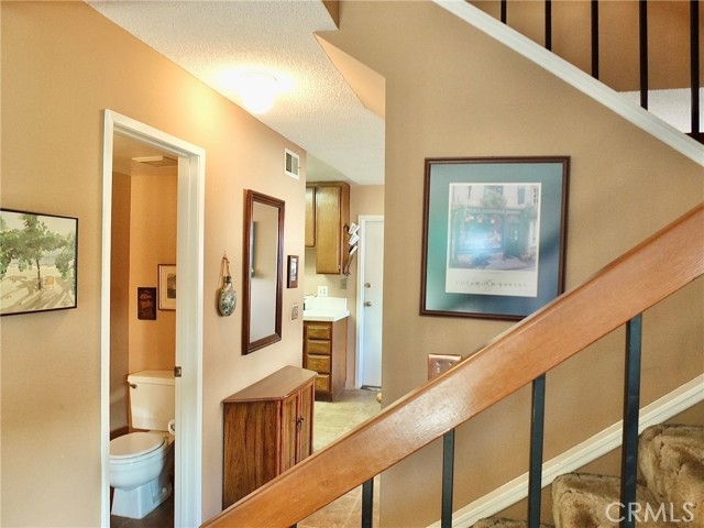 Private end unit in small complex of just 22 homes. Home is sunny and bright. Location has a beautiful grass area and close to the hot tub. Downstairs is open with nice kitchen, laundry room (washer and dryer included) cabinets, pantry. Dining room has a built-in breakfast nook and table. Relaxing living room with beautiful gas fireplace with sliding door and direct access to private patio area perfect for entertaining. Downstairs bathroom. Extra large master bedroom upstairs with private bath, closets and sliding door to outside deck. Second bedroom is spacious with a private bathroom. Home is perfect for 2 master suites. 2 car direct access garage (new door and opener 2022). Lots of guest parking. Close to all freeways and shopping. Excellent location and home.