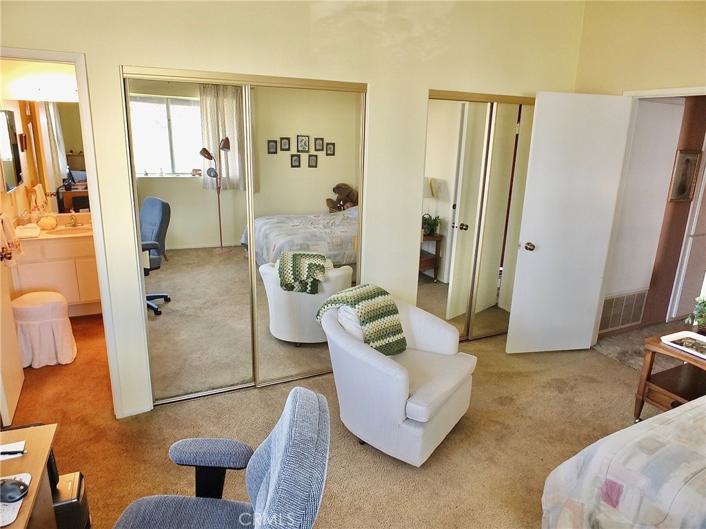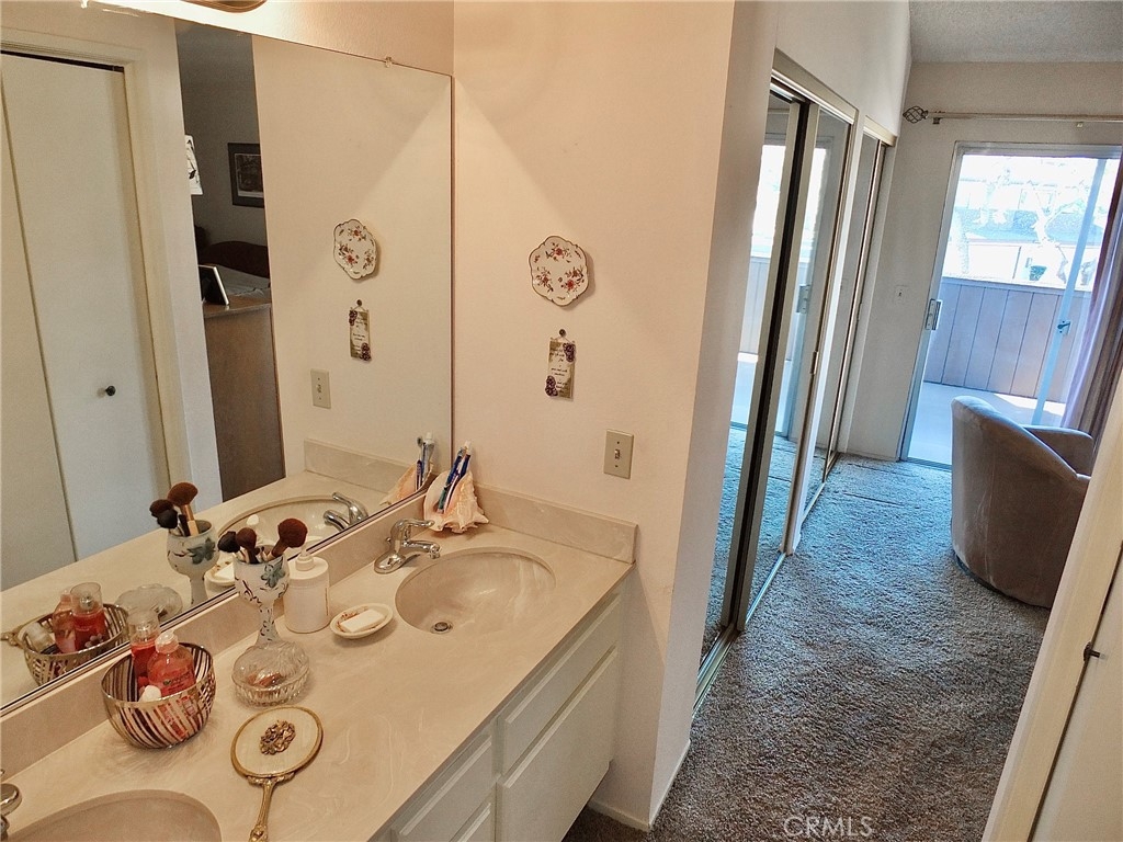 Private end unit in small complex of just 22 homes. Home is sunny and bright. Location has a beautiful grass area and close to the hot tub. Downstairs is open with nice kitchen, laundry room (washer and dryer included) cabinets, pantry. Dining room has a built-in breakfast nook and table. Relaxing living room with beautiful gas fireplace with sliding door and direct access to private patio area perfect for entertaining. Downstairs bathroom. Extra large master bedroom upstairs with private bath, closets and sliding door to outside deck. Second bedroom is spacious with a private bathroom. Home is perfect for 2 master suites. 2 car direct access garage (new door and opener 2022). Lots of guest parking. Close to all freeways and shopping. Excellent location and home.