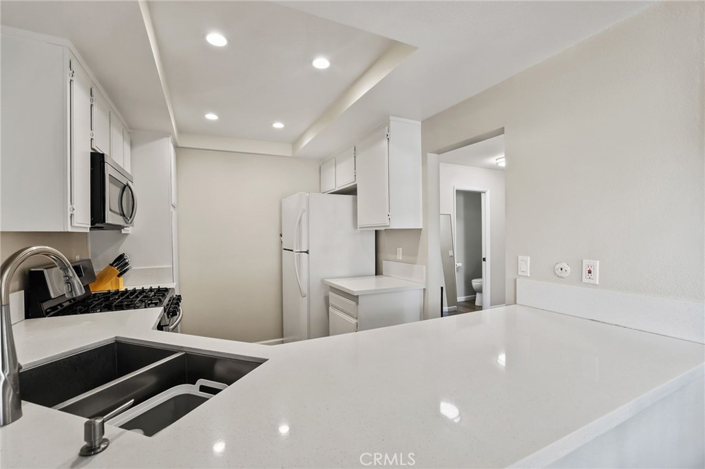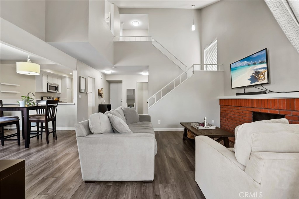 *** Upgraded Townhouse - Move In Ready! *** Experience the comfort and style in this absolutely gorgeous townhome. Step inside and be delighted by the many upgrades throughout this 3 bedroom 2 1/2 bathroom corner unit with no neighbors above or below. The downstairs boasts laminate wood flooring, leading to a stunning open-concept living area with soaring high ceilings and an inviting fireplace. Large picture windows flood the space with natural light, creating an open-air ambiance that extends to the private, wrap-around patio with raised planters – perfect for entertaining or relaxing. The upgraded kitchen features sleek white quartz slab countertops, stainless steel appliances, and stylish ceiling fixtures. A remodeled powder room downstairs adds a touch of modern sophistication. Upstairs, discover three spacious bedrooms with brand new carpeting. The remodeled bathrooms are beautiful. Primary bathroom includes double sinks and white quartz countertops. Primary bedroom also opens onto a private balcony, offering serene outdoor space. Two additional bedrooms complete the upstairs. Oversized 2-car garage with direct home access, new roll up garage door and opener plus extra storage. HOA benefits include water, trash, and common area maintenance included. Newer city remodeled parks plus Garden Amp an outdoor amphitheater featuring concerts, classic films & children's theater productions. Easy access to freeways, shopping, Sprouts, restaurants, parks, beaches and so much more. Don't miss your chance to own this exceptional home!
