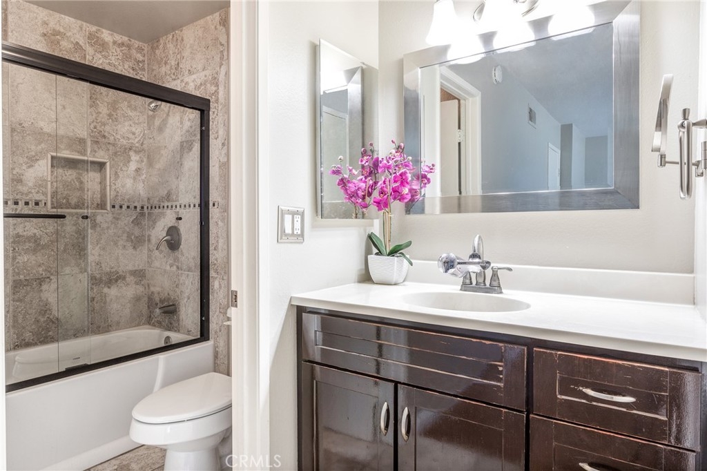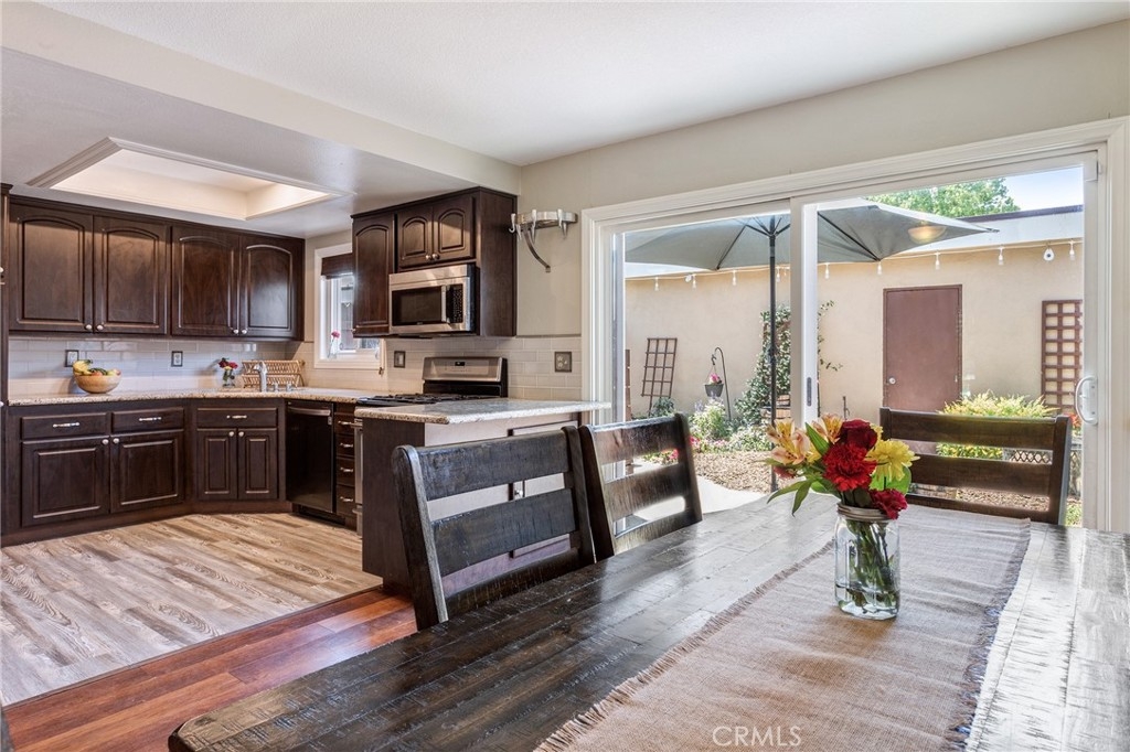 WELCOME HOME to this amazing townhouse in the much sought-after Stonegate community of Garden Grove. This home is a 1383 sq. ft, two-story, 2 bedroom, 2 1/2 bath townhome. The first floor consist of a half bathroom, living room, Fireplace with stone hearth, dining room, breakfast nook, kitchen; with newly updated vinyl flooring, all stainless steel refrigerator, oven/stove, dishwasher, microwave, granite counters, tiled backsplash, built-in recessed area for the refrigerator. Sliding glass doors off of kitchen/dining area lead out to your very own private courtyard. The entire home has easy to maintain vinyl / laminate flooring throughout. Upstairs consists of 2 large bedrooms and two bathrooms. The master bedroom has its own walk-in closet and its own master bathroom, tub/shower with tilework. The Second bedroom has walk-in closet. There is a second bathroom; with its own shower with tile work as well. Adjacent to your private patio area is access to a large, two-car garage, with laundry hook up. Association amenities include: Clubhouse, Pool, lounge chair area, jacuzzi and tennis court. Low HOA's of $210/ mo. All within walking distance to shopping, dining and Eastgate park. A MUST SEE.!! Please contact selling agent for viewing appointments.