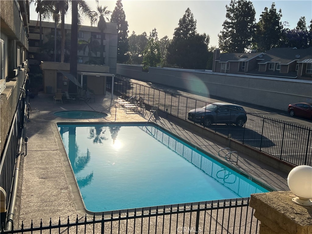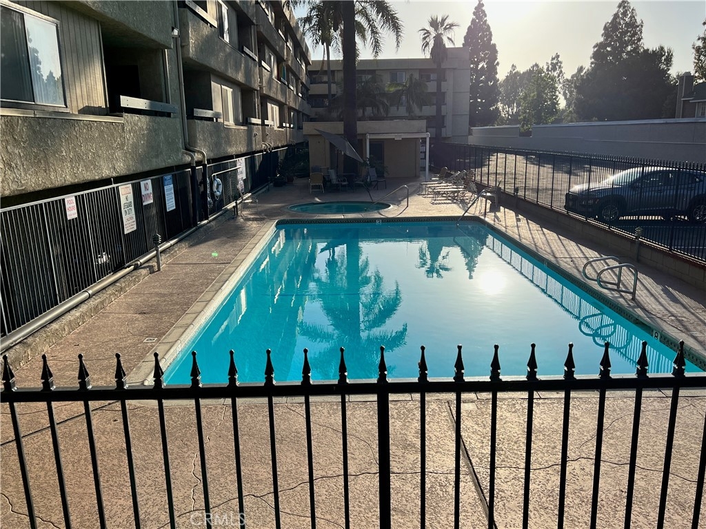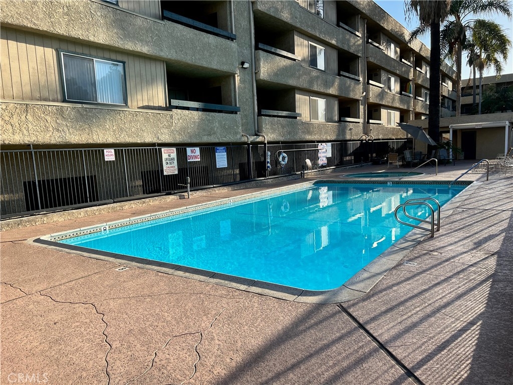 Enjoy this two bed, two bath condo unit with updated kitchen and bathroom finishes. Family room has a fireplace. Laundry hook-ups inside unit. One underground, gated parking space plus one outside parking space. Granite counters, breakfast eating bar, extra storage in dining nook, and built-in storage in living room. Both bedrooms are large. Master bedroom has walk-in closet and own bathroom. Building has in-ground pool and spa. Living room and master bedroom each have a balcony, with storage closet in the master balcony. Balcony off the living room has a hose bib, unique to this unit. Close to shopping, park, and transit.