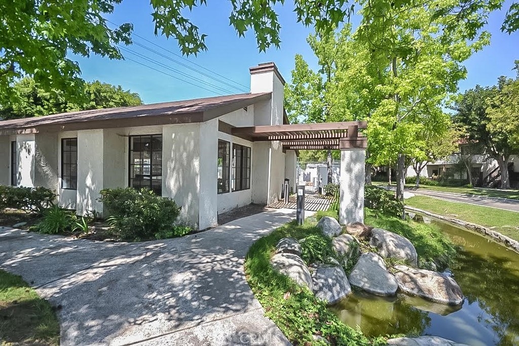 Spacious 2 bedroom 2 bathroom 2 car garage end unit located in the gated Meadow Brook Village community. Location heart of garden grove area close to shopping center and 22, 405 freeways. Spacious living room with fireplace. central A/C, formal dining room and inside laundry. 2 Large balconies off master bedroom and living room. HOA features pool, spa, club house, tennis court, hot and cold water and trash .Great for the first time buyers.