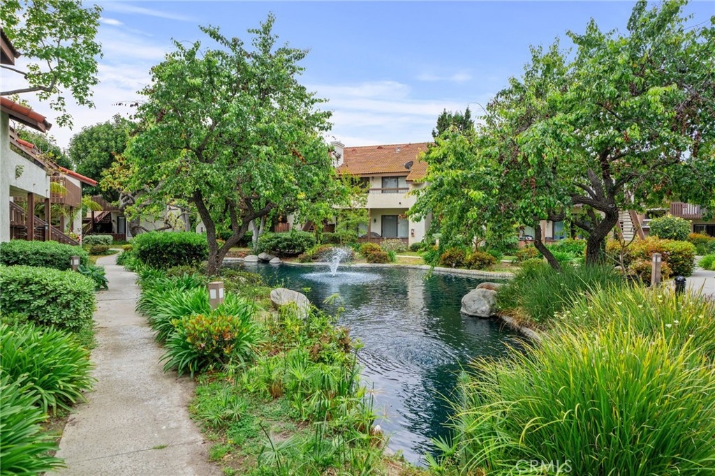 Welcome home! This turnkey property is located just minutes away from Disneyland in the desirable Meadowbrook Village community, offering a variety of amenities including a pool, spa, barbecue areas, clubhouse, tennis courts, a community koi pond, and more! This first-level unit features 774 sq. ft. of living space, with one bedroom and one bathroom. Upon entry, you are greeted by plank flooring installed throughout, providing a uniform flow and easy maintenance. The main living area is open and inviting, perfect for entertaining, and features a floor-to-ceiling backdrop and a cozy fireplace. The kitchen has been boasts quartz countertops, stainless steel appliances, a custom range hood, and ample cabinet space for all your storage and organizational needs. The bedroom offers direct access to the patio and includes a walk-in closet with custom storage. The bathroom features dual sinks, quartz countertops, and a tile backsplash in the shower. Inside laundry room for additional convenience. The patio area provides plenty of space to enjoy the view of the pond while soaking up the California sunshine. Don’t miss this opportunity! Schedule your private showing today.