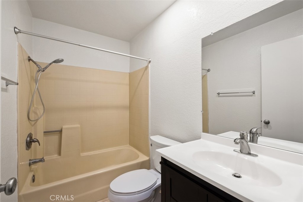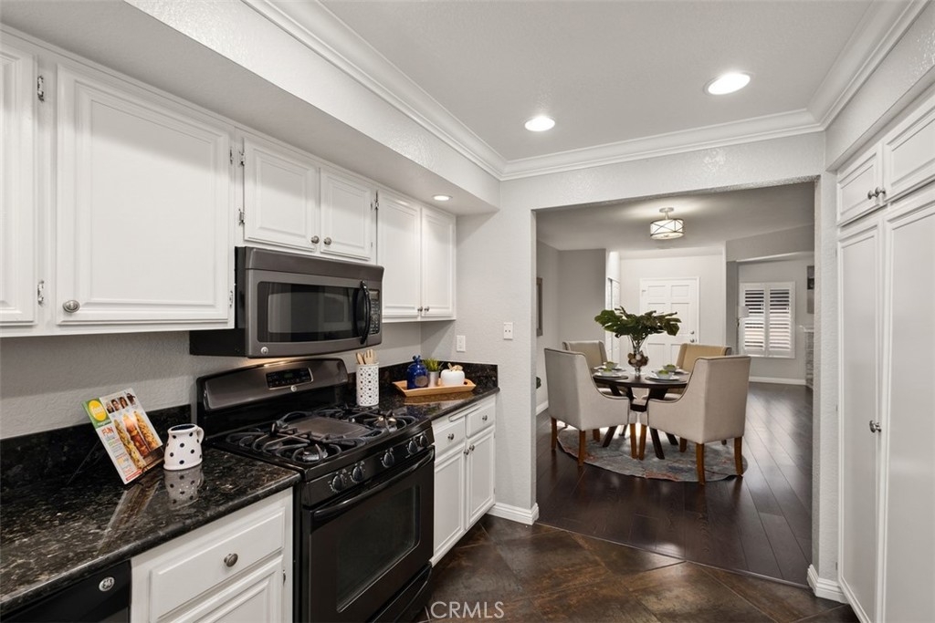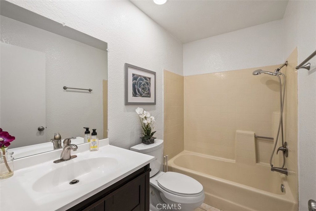 Spacious 3 bedroom 3 bath townhome in gated community of Meadow Brook Village. Enter the front door to a spacious living room, vaulted ceilings, laminate floors and a modern tiled fireplace. Dining room leads to kitchen with recessed lighting, black granite counters, white cabinets, tile floors, and convenient door leading to one of the patios. The upper floor includes large master bedroom with high ceilings, walk-in closet and dual sink vanity. Also located on this floor is the third bedroom and adjacent bathroom. There is a 2 car attached garage with direct access located on lower level, with washer/dryer hookups and plenty of room for storage. HOA amenities include poos, spa, tennis court, clubhouse, and BBQ area. The community is located near freeways, shopping, dining, and parks.