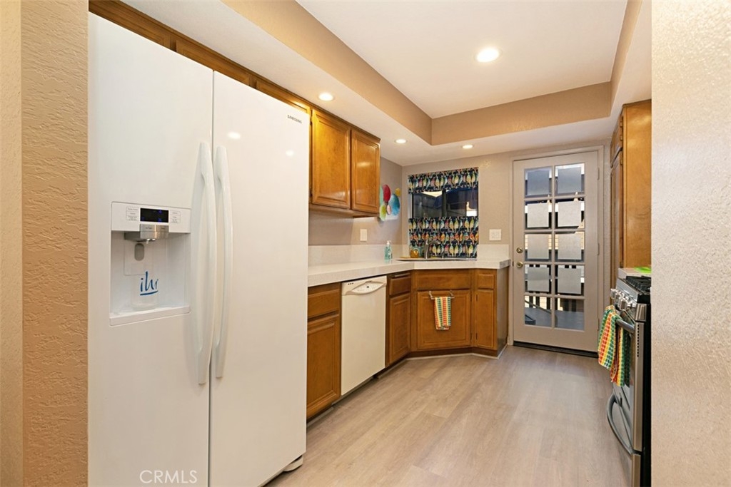 BEAUTIFUL AND AFFORDABLE, RECENTLY RENOVATED TOWNHOME! An updated and rare MOVE IN READY 2 bedroom/2 bath unit located in the peaceful and private gated community of Meadow Brook Villas has just become available. Beautifully manicured landscaping by the HOA features streams, bridges, ponds, fountains, community swimming pool/spa, tennis courts, clubhouse and walkways throughout the complex. The spacious 1163 sqft floor plan features an open concept with smooth vaulted ceilings with recessed lighting. Your living room features a cozy fireplace, dining area, large windows and a slider providing lots of natural lighting. Kitchen is lite and bright with a patio deck located right outside. Master suite encompasses the entire upstairs and has a large shower/tub combination, and spacious walk-in closet. Full sized and directly accessible two car garage with washer and dryer hook-ups, storage cabinets and finished drywall. This home is turn-key in every way and is being sold completely furnished with all appliances. Close to exceptional dining in Korea Town, Little Saigon, and historic Garden Grove Main Street just minutes away. Costco, Home Depot, Walmart and other big box sellers are within 2 miles of subject. Very close access to 22, 5, 405 and 91 freeways make this home an easy commuter setting for all of central Orange County. Must be seen to be appreciated and won’t last long!