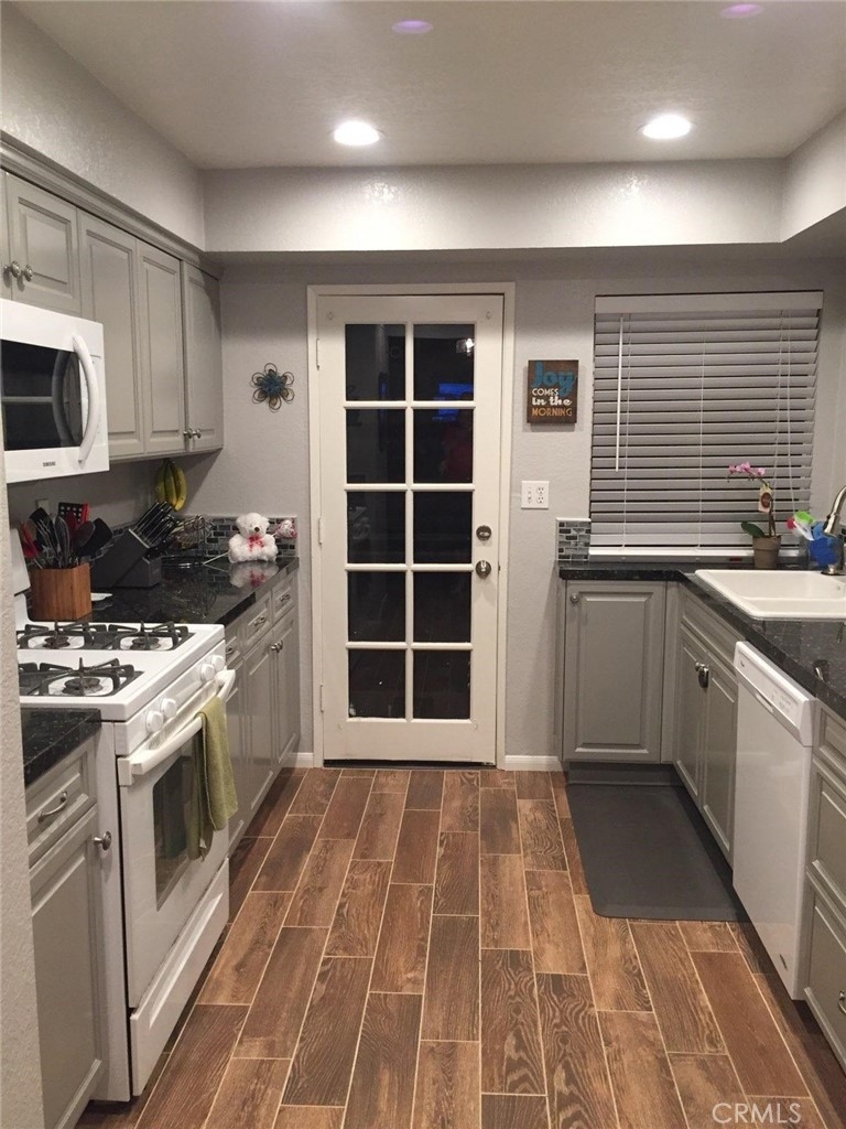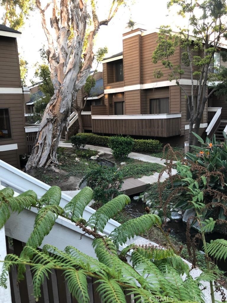 Welcome to your new home in gated community of Meadow Brook Village! Highly coveted multi-level end unit townhouse. 2 bedrooms, 2 full bathrooms and a large 2-car garage with laundry hookups. Main floor completed remodeled kitchen with newer cabinets and quartz countertops and mosaic backsplash. Newer tile flooring that looks like dark wood in main floor, carpeted bedrooms and stairs. 1 bedroom and bathroom on main floor and master suite top floor. Living room has vaulted ceilings and fireplace. Newer Air Conditioning unit and Furnace. Very nice view of the creek and stream flowing along the front of the building off the front porch. Additional patio off kitchen to entertain and BBQ. Meadow Brook Village amenities include gated access, swimming pool, spa, BBQ area, clubhouse and BBQ area. HOA covers exterior maintenance/insurance, trash, water and gas for heating water. Freeway close to the 22 and short distance to the 5 or the 405.