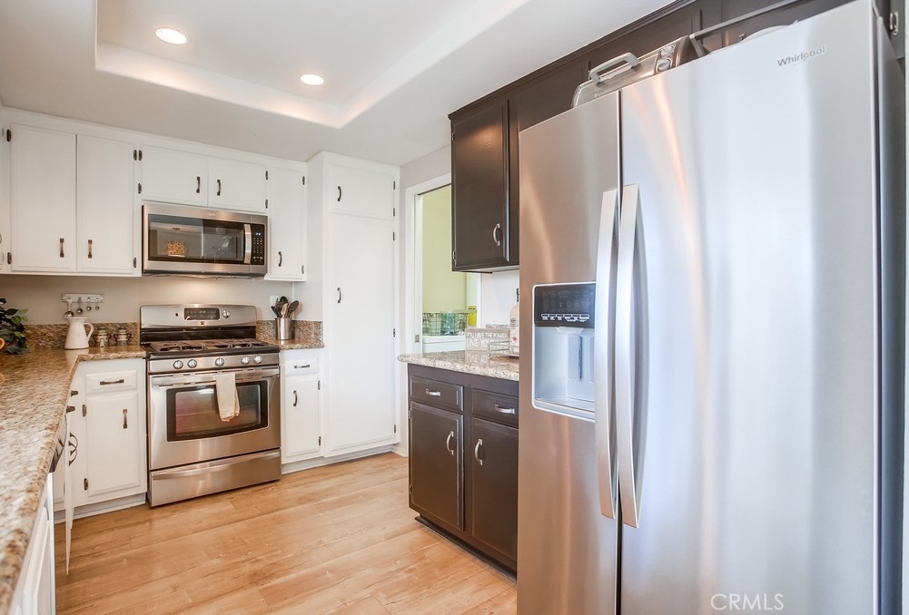 Welcome to your new home in a quiet, gated, community. Valley View Park Townhomes are located in the heart of West Garden Grove and provide close access to award winning schools, and beautiful parks. This townhome has it all! Downstairs is a large living room with a cozy fireplace, 1/2 bath, inside laundry room, dining room with slider to patio, and kitchen featuring granite counters, stainless steel appliances, dishwasher and window overlooking the private rear patio. At the top of the stairs is generous storage for linens, games, etc., and 3 bedrooms. The master bedroom has an ensuite bathroom and another full bath is in the hallway. The rear, private patio is perfect for entertaining or relaxing on one of our many perfect SoCal days, and from the patio is direct access to the 2 car garage. You will be happy with the home, as well as, the well maintained community with its swimming pool and spa. Nearby access to the 405 and 22 freeways make shopping, dining and work convenient.