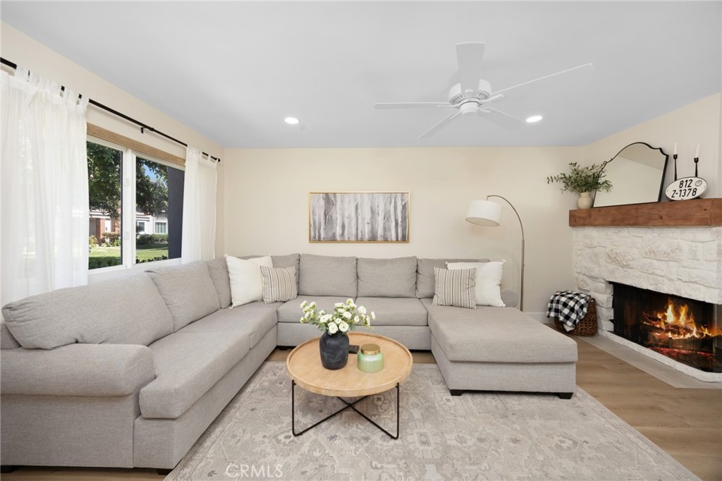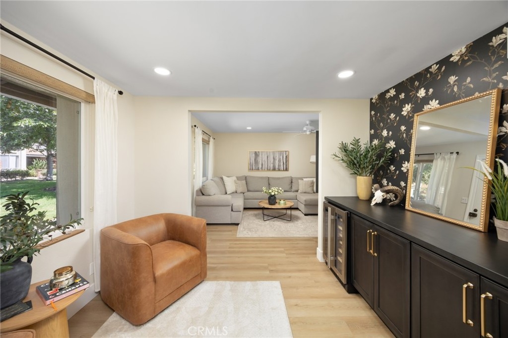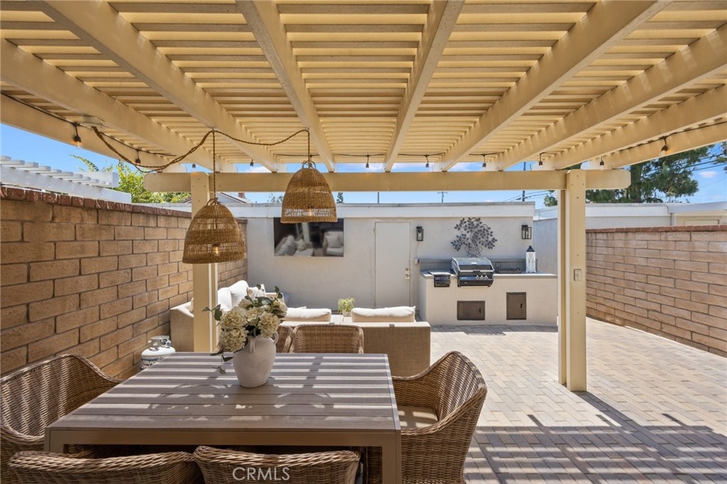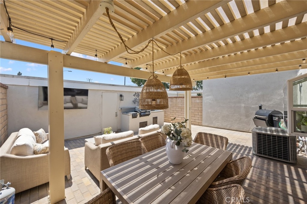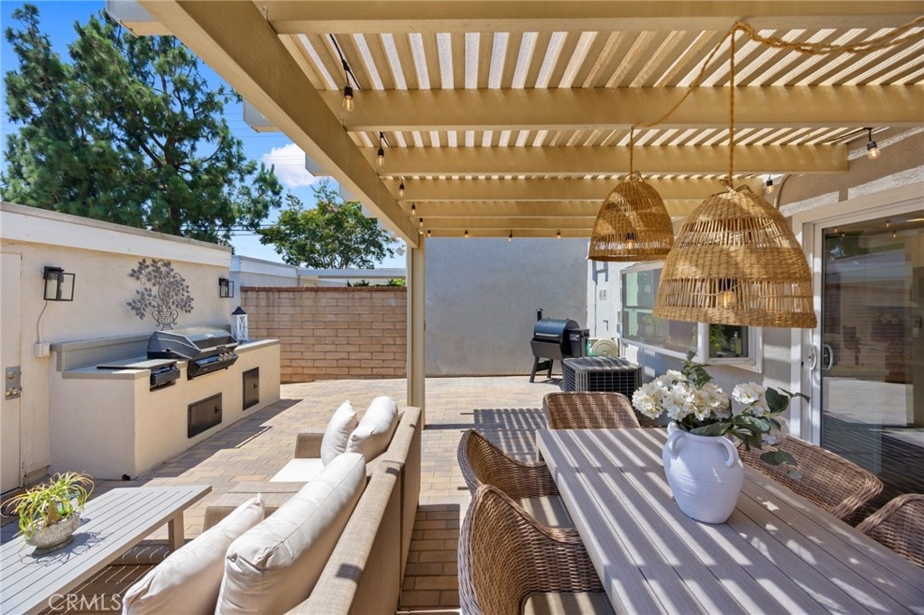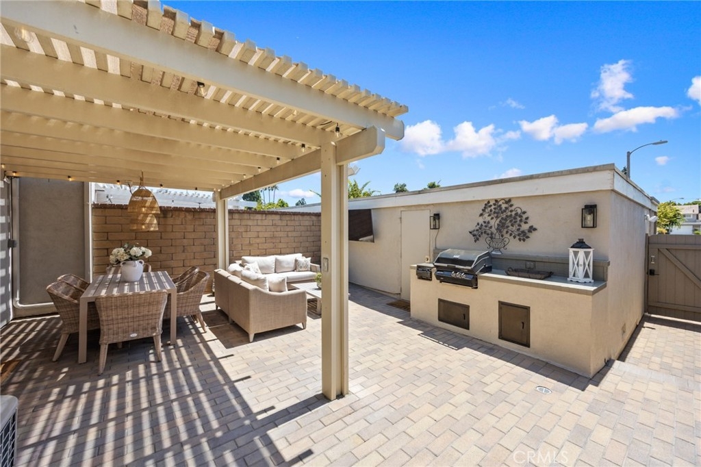 Tucked away in a peaceful, interior location, this charming 3-bedroom, 3-bath townhome has been meticulously updated and is ready for you to move right in! Inside, you'll immediately feel a sense of warmth, with a bright and airy atmosphere flowing throughout. Setting the tone for this universally appealing home is the understatedly elegant living room featuring a custom-designed dual-sided fireplace situated next to the beautifully remodeled kitchen. Any chef would delight in an atmosphere adorned with sleek quartz countertops, stainless steel appliances (including gas range, microwave, refrigerator/freezer, and utility sink), and everything at their fingertips to create their next masterpiece! You'll love the versatile den on the first floor, which can be easily transformed into a fourth bedroom, home office, or cozy reading nook. Upstairs, the bedrooms offer tranquil retreats for all occupants; particularly impressive is the primary. The subtly bold accent wall and custom-built sliding barn-style closet doors offer a unique feel unlike any other property in the community, not to mention a beautiful view overlooking the lush green belt below. All bathrooms have showers and have been recently remodeled and stylishly upgraded, including a unique ensuite primary bath featuring dual sinks, ample under-the-counter storage, and a spacious walk-in shower with a seamless glass enclosure. For indoor/outdoor living enthusiasts, the private backyard is an entertainer's paradise! Imagine hosting summer barbecues with friends and family using your very own built-in grill and island — this property truly has everything! Including direct access to the beautifully finished two-car garage with non-slip epoxy floors, currently serving as a man cave furnished with a home gym and workbench/storage area. Additional upgrades include full copper plumbing, central AC, indoor laundry + washer and dryer, and dual-pane windows. This home is just as comfortable as it is beautiful! The property offers easy access to the community pool/spa & clubhouse, local shops, restaurants, freeways, and top-rated schools. This property is more than just a home; it's a lifestyle ...