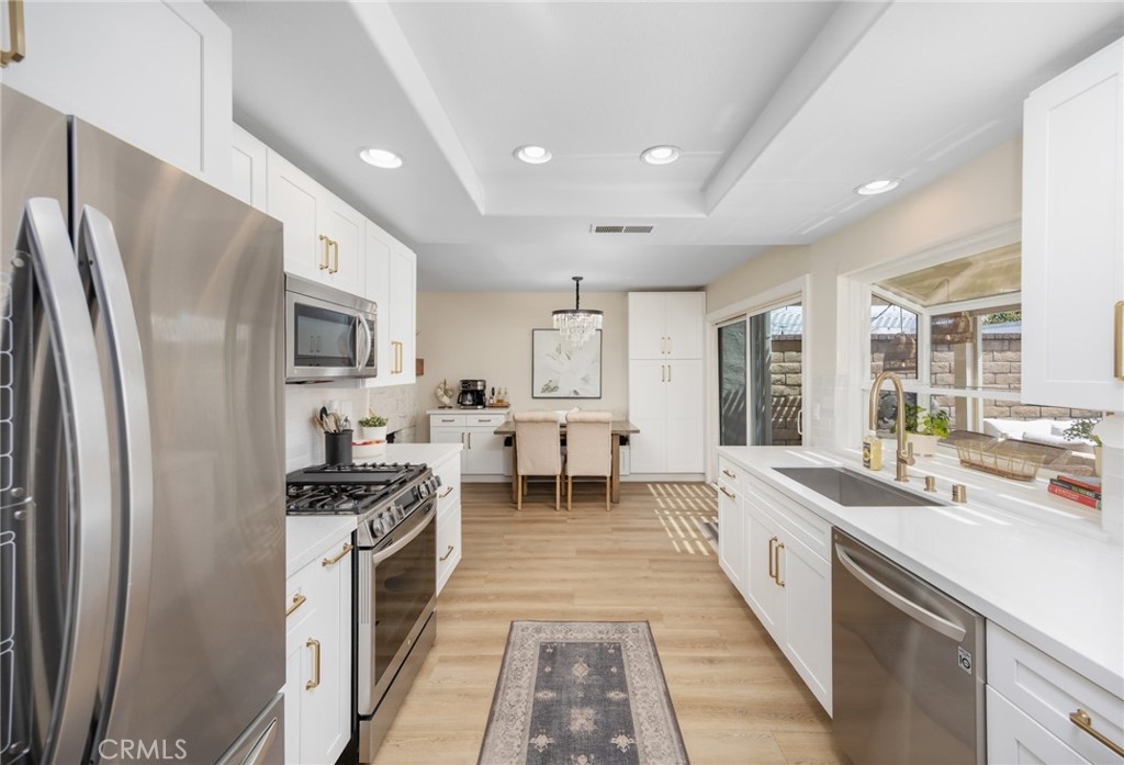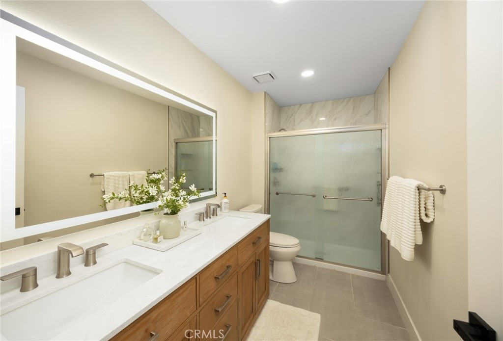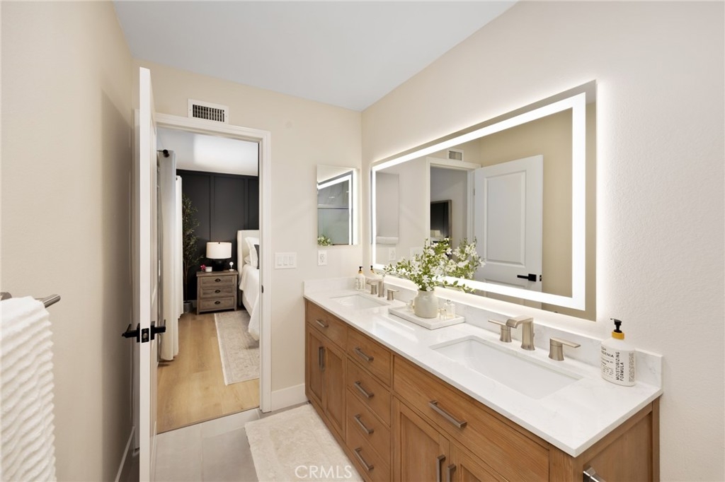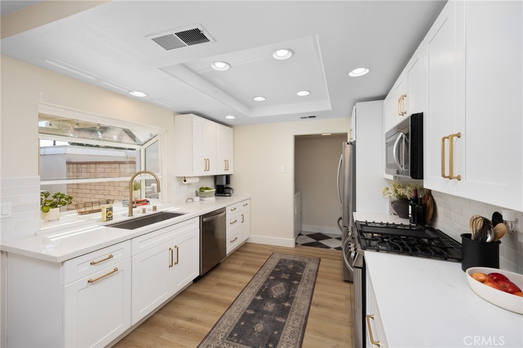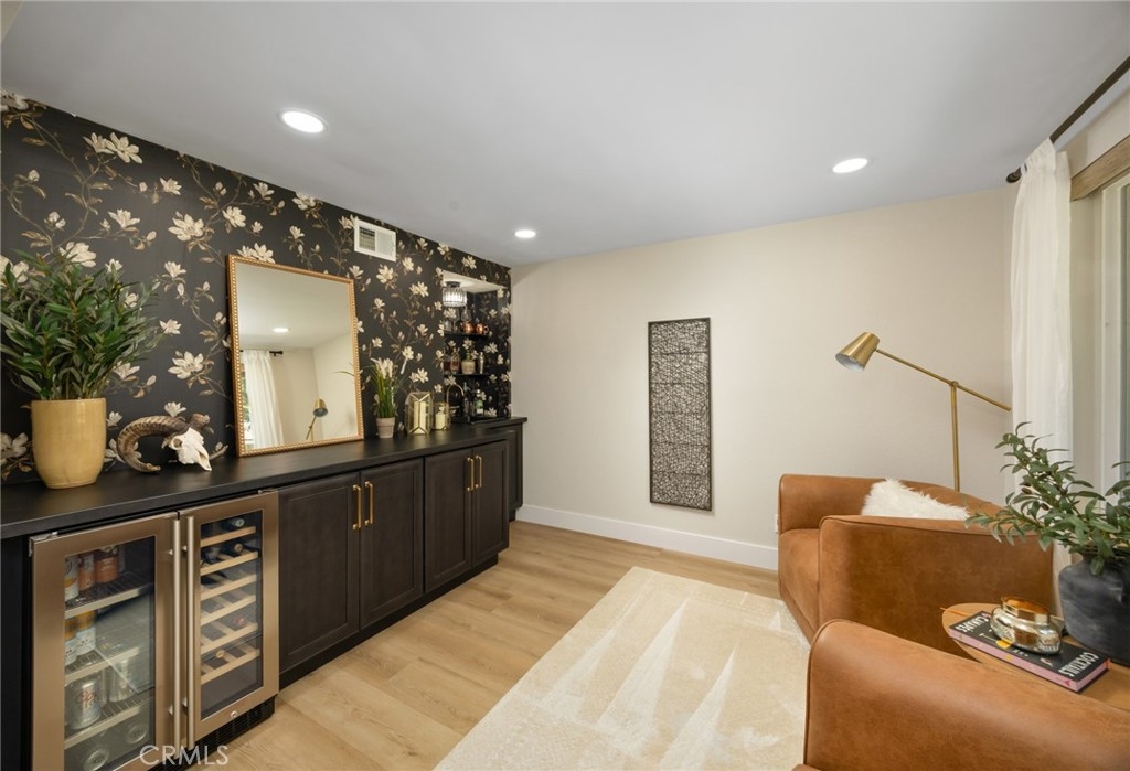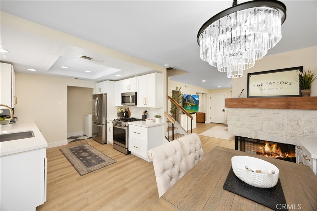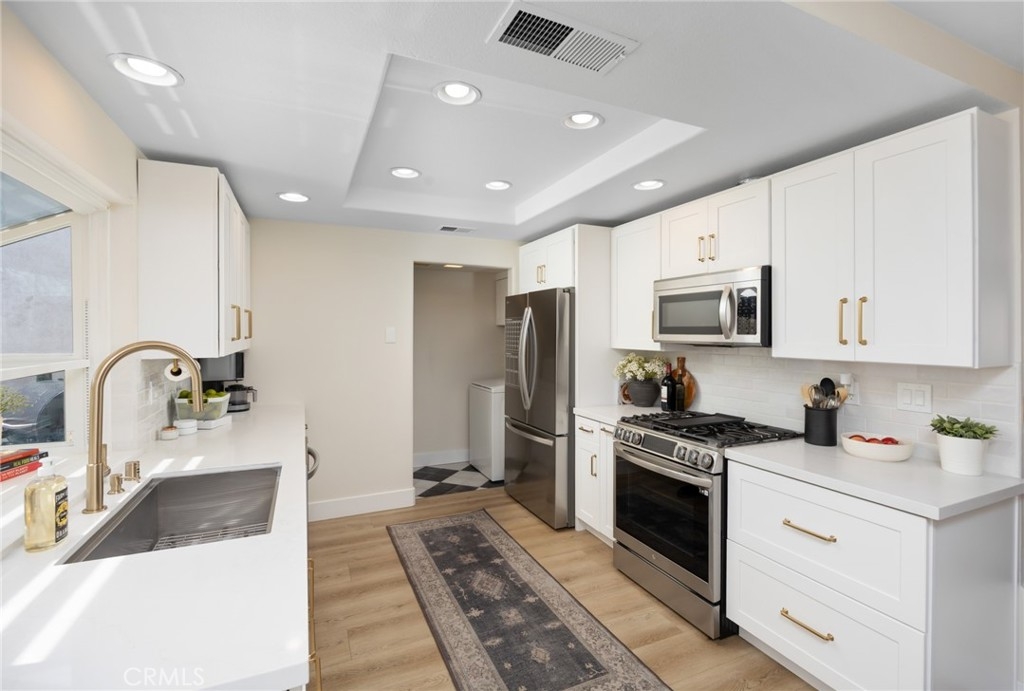 Tucked away in a peaceful, interior location, this charming 3-bedroom, 3-bath townhome has been meticulously updated and is ready for you to move right in! Inside, you'll immediately feel a sense of warmth, with a bright and airy atmosphere flowing throughout. Setting the tone for this universally appealing home is the understatedly elegant living room featuring a custom-designed dual-sided fireplace situated next to the beautifully remodeled kitchen. Any chef would delight in an atmosphere adorned with sleek quartz countertops, stainless steel appliances (including gas range, microwave, refrigerator/freezer, and utility sink), and everything at their fingertips to create their next masterpiece! You'll love the versatile den on the first floor, which can be easily transformed into a fourth bedroom, home office, or cozy reading nook. Upstairs, the bedrooms offer tranquil retreats for all occupants; particularly impressive is the primary. The subtly bold accent wall and custom-built sliding barn-style closet doors offer a unique feel unlike any other property in the community, not to mention a beautiful view overlooking the lush green belt below. All bathrooms have showers and have been recently remodeled and stylishly upgraded, including a unique ensuite primary bath featuring dual sinks, ample under-the-counter storage, and a spacious walk-in shower with a seamless glass enclosure. For indoor/outdoor living enthusiasts, the private backyard is an entertainer's paradise! Imagine hosting summer barbecues with friends and family using your very own built-in grill and island — this property truly has everything! Including direct access to the beautifully finished two-car garage with non-slip epoxy floors, currently serving as a man cave furnished with a home gym and workbench/storage area. Additional upgrades include full copper plumbing, central AC, indoor laundry + washer and dryer, and dual-pane windows. This home is just as comfortable as it is beautiful! The property offers easy access to the community pool/spa & clubhouse, local shops, restaurants, freeways, and top-rated schools. This property is more than just a home; it's a lifestyle ...