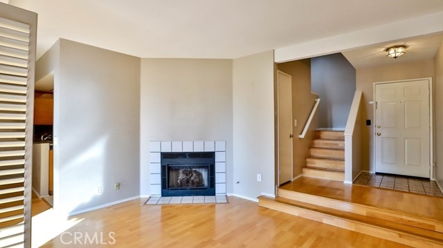 Welcome to the Village Green Community. This 2 bed 2 bath unit features open floor plan, central heat/AC, huge master bedroom with large walk-in mirrored closets, wood floor, window shutters, lots of natural lights, cozy gas fireplace, attached 2 car garage with direct access and plenty of guest parking. The unit is split level but there is only a 5 steps to get up/down. There is a private low maintenance patio with tile floor great for relaxing in the sun. Walking distance to Strawberry Festival, historic main street Garden Grove, restaurants and eateries, Garden Amphitheater, GEM theatre, city hall, public library, parks, churches, schools, shopping center and freeways. Village Green amenities include pool and spa and HOA dues pay for water and trash.