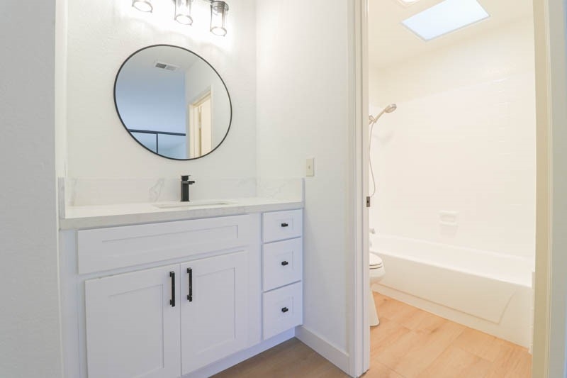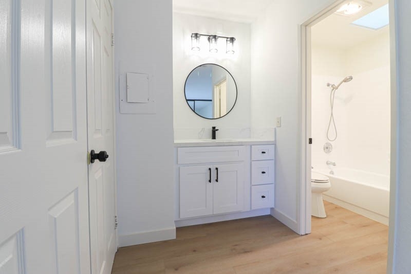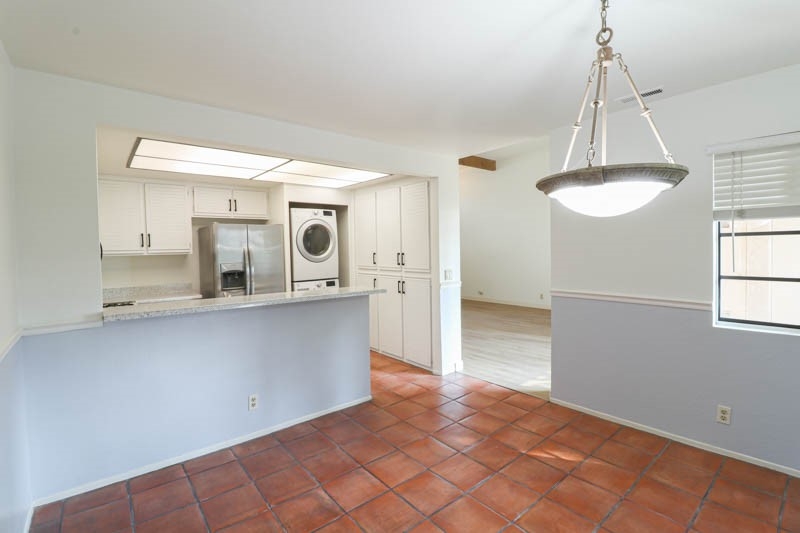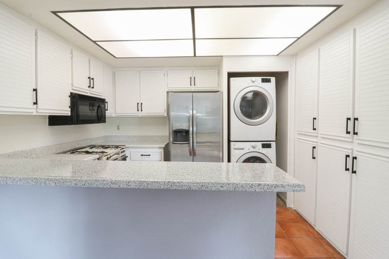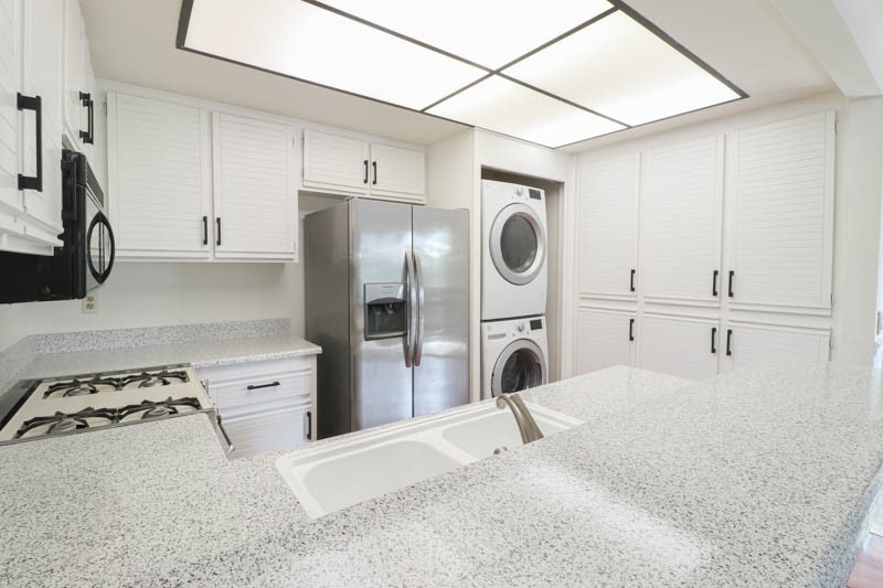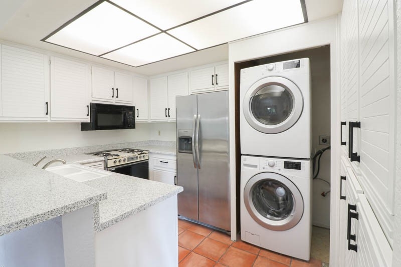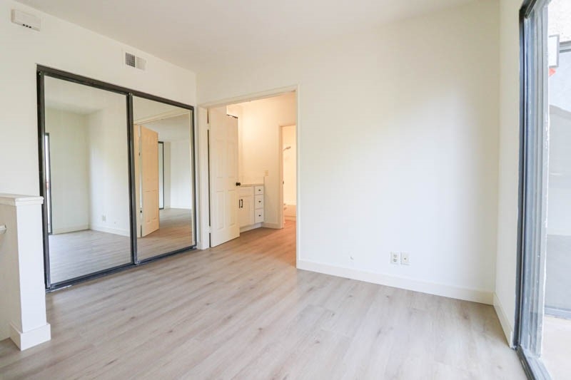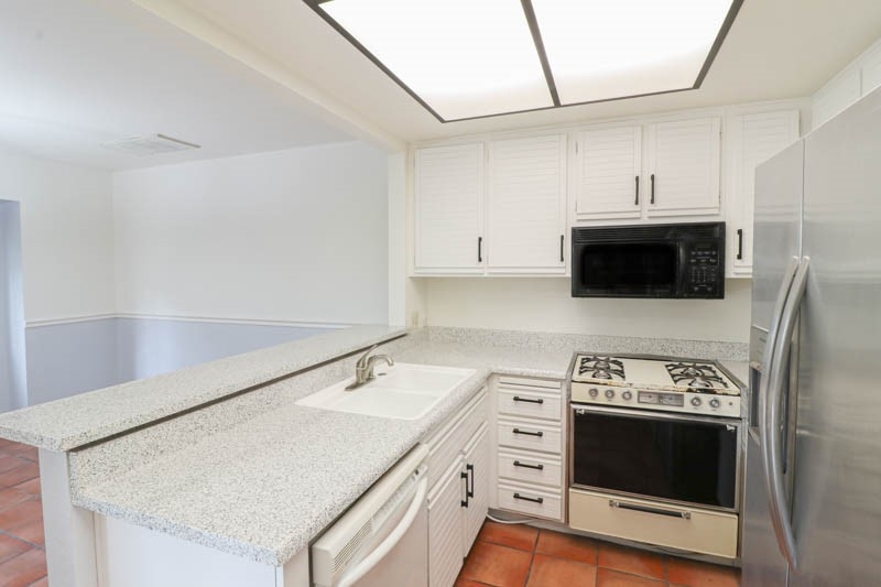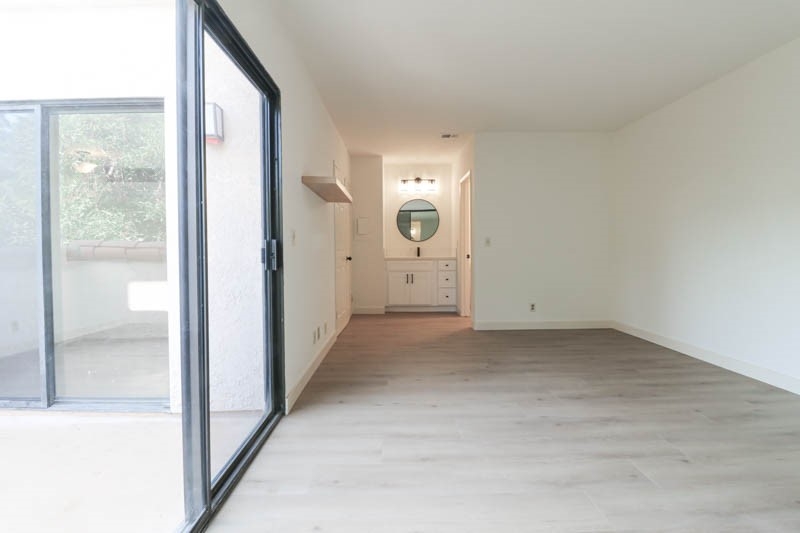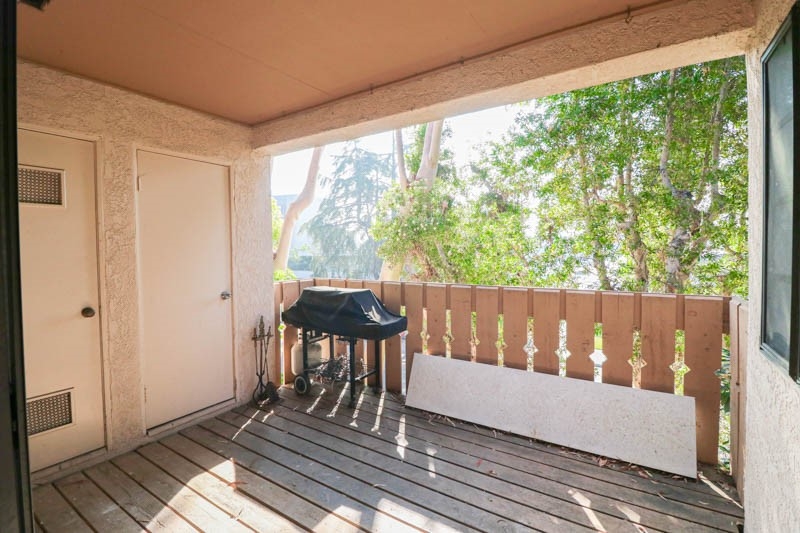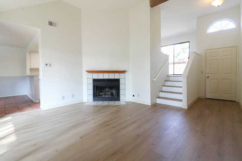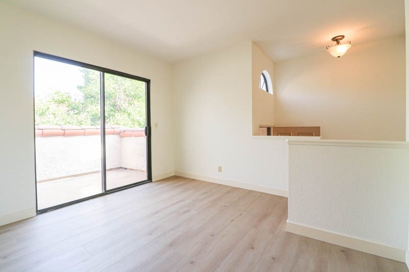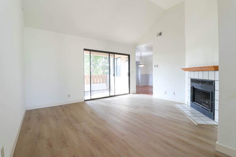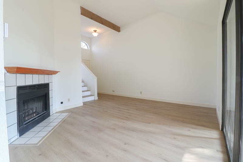 Welcome to the Village Green Community. This 1 bed 1 bath 1 level top floor unit (no one above) with a bonus room with closet (can be a den or 2nd bedroom) features open floor plan, vaulted ceiling, central heat/AC, inside laundry, huge master bedroom with large walk-in mirrored closets, dual balconies with views, lots of natural lights, cozy gas fireplace, oversized 1 car garage and plenty of guest parking. Recent upgrades include new waterproof 8 MM vinyl flooring, new vanity & light fixture, fresh paint, scraped ceiling and gas line repipe. Walking distance to Strawberry Festival, historic main street Garden Grove, restaurants and eateries, Garden Amphitheater, GEM theatre, city hall, public library, parks, churches, schools, shopping center and freeways. Village Green amenities include pool and spa and HOA dues pay for water and trash.