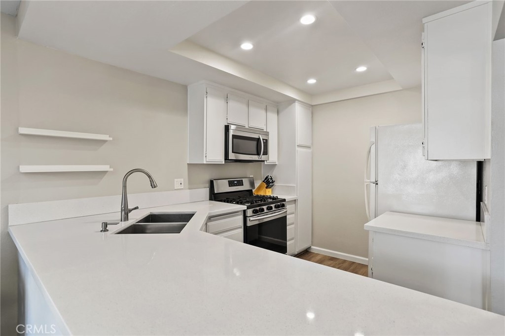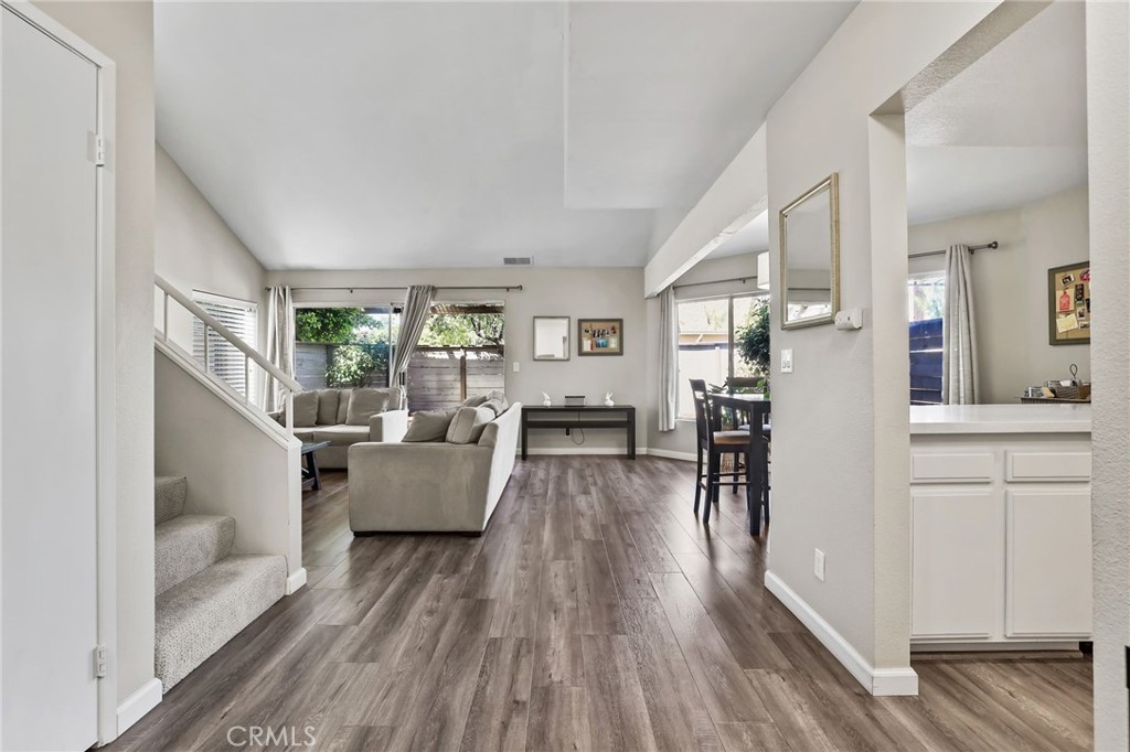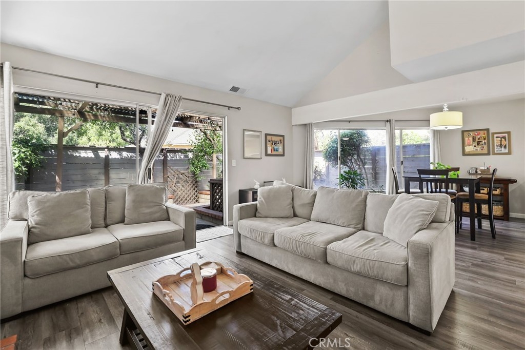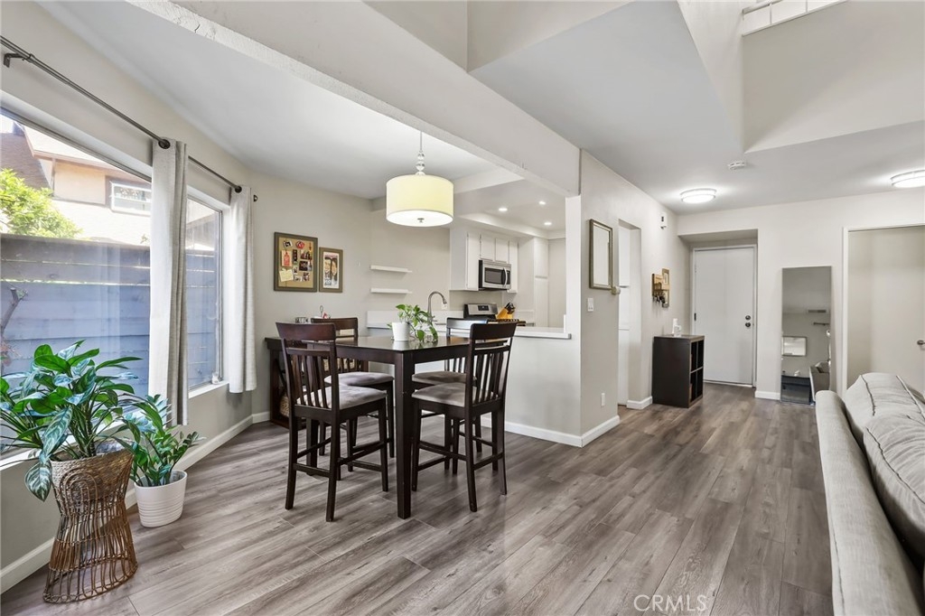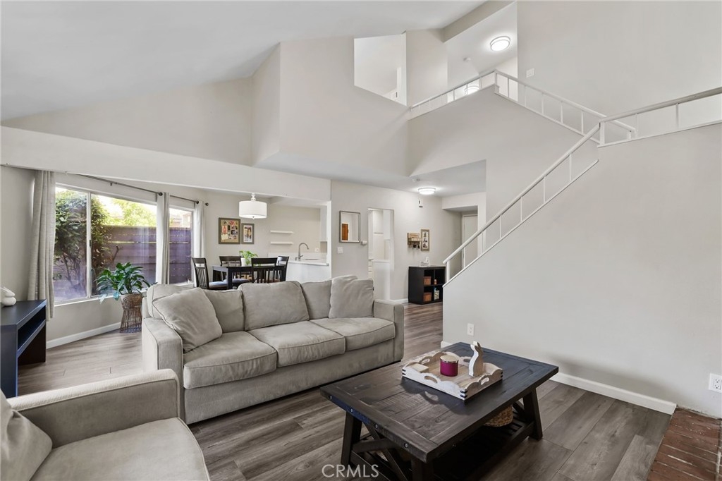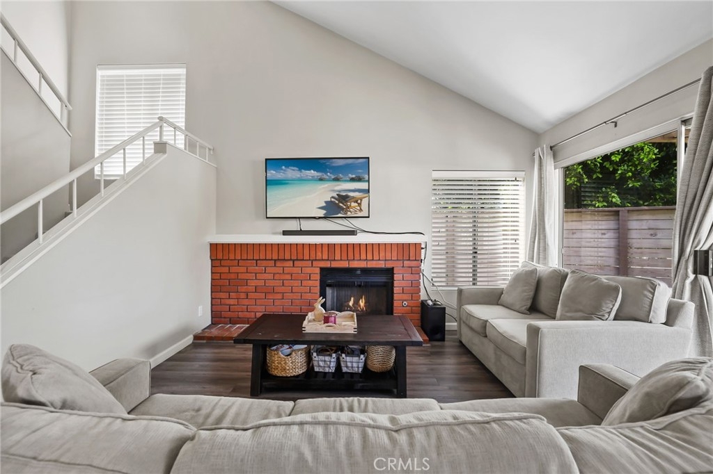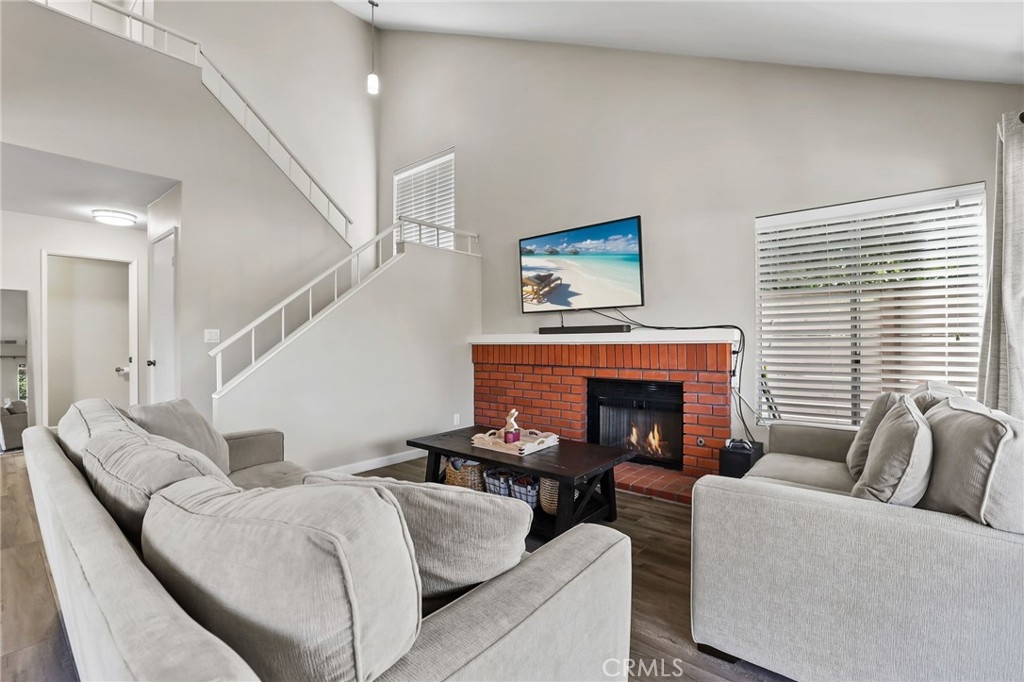 *** Upgraded Townhouse - Move In Ready! *** Experience the comfort and style in this absolutely gorgeous townhome. Step inside and be delighted by the many upgrades throughout this 3 bedroom 2 1/2 bathroom corner unit with no neighbors above or below. The downstairs boasts laminate wood flooring, leading to a stunning open-concept living area with soaring high ceilings and an inviting fireplace. Large picture windows flood the space with natural light, creating an open-air ambiance that extends to the private, wrap-around patio with raised planters – perfect for entertaining or relaxing. The upgraded kitchen features sleek white quartz slab countertops, stainless steel appliances, and stylish ceiling fixtures. A remodeled powder room downstairs adds a touch of modern sophistication. Upstairs, discover three spacious bedrooms with brand new carpeting. The remodeled bathrooms are beautiful. Primary bathroom includes double sinks and white quartz countertops. Primary bedroom also opens onto a private balcony, offering serene outdoor space. Two additional bedrooms complete the upstairs. Oversized 2-car garage with direct home access, new roll up garage door and opener plus extra storage. HOA benefits include water, trash, and common area maintenance included. Newer city remodeled parks plus Garden Amp an outdoor amphitheater featuring concerts, classic films & children's theater productions. Easy access to freeways, shopping, Sprouts, restaurants, parks, beaches and so much more. Don't miss your chance to own this exceptional home!